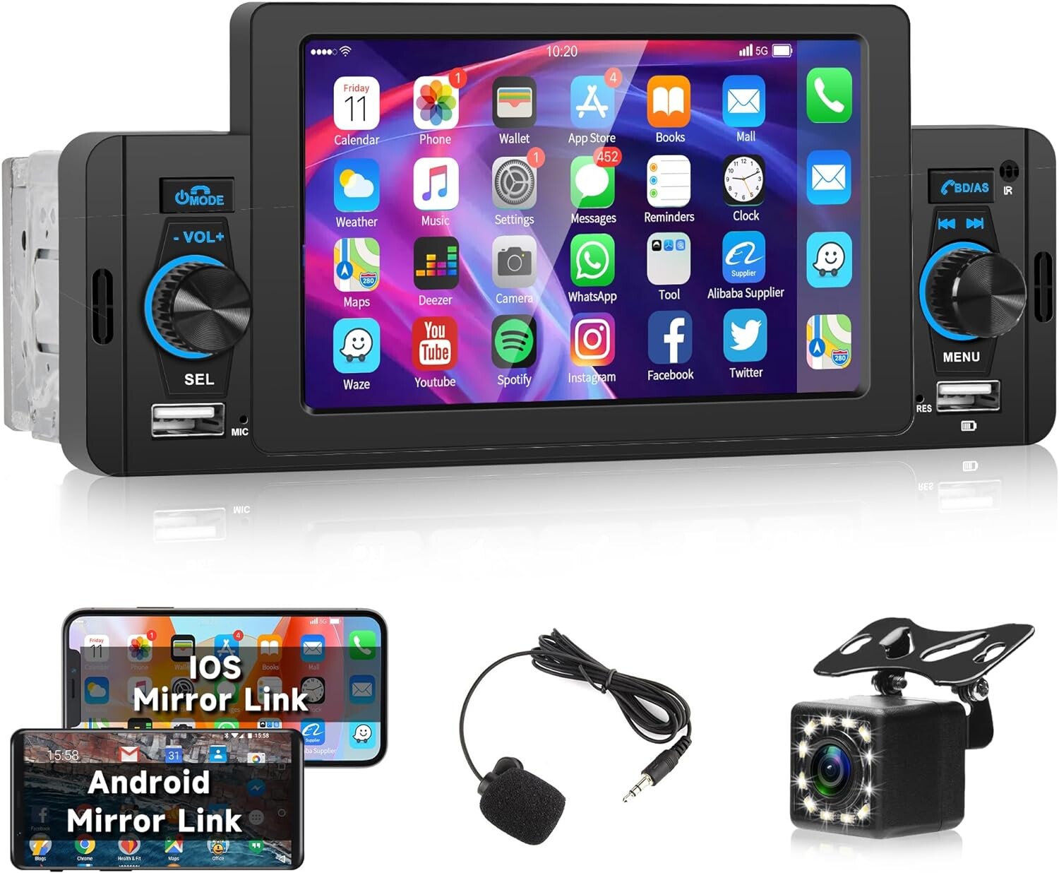Autoradio 1 Din Bluetooth d'occasion grand écran avec fonctions Mirror Link et caméra de recul