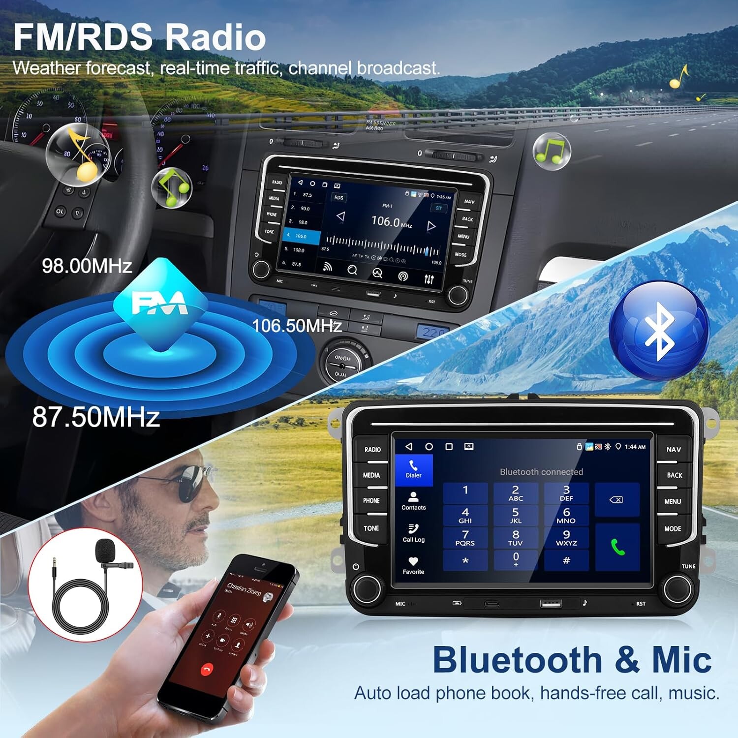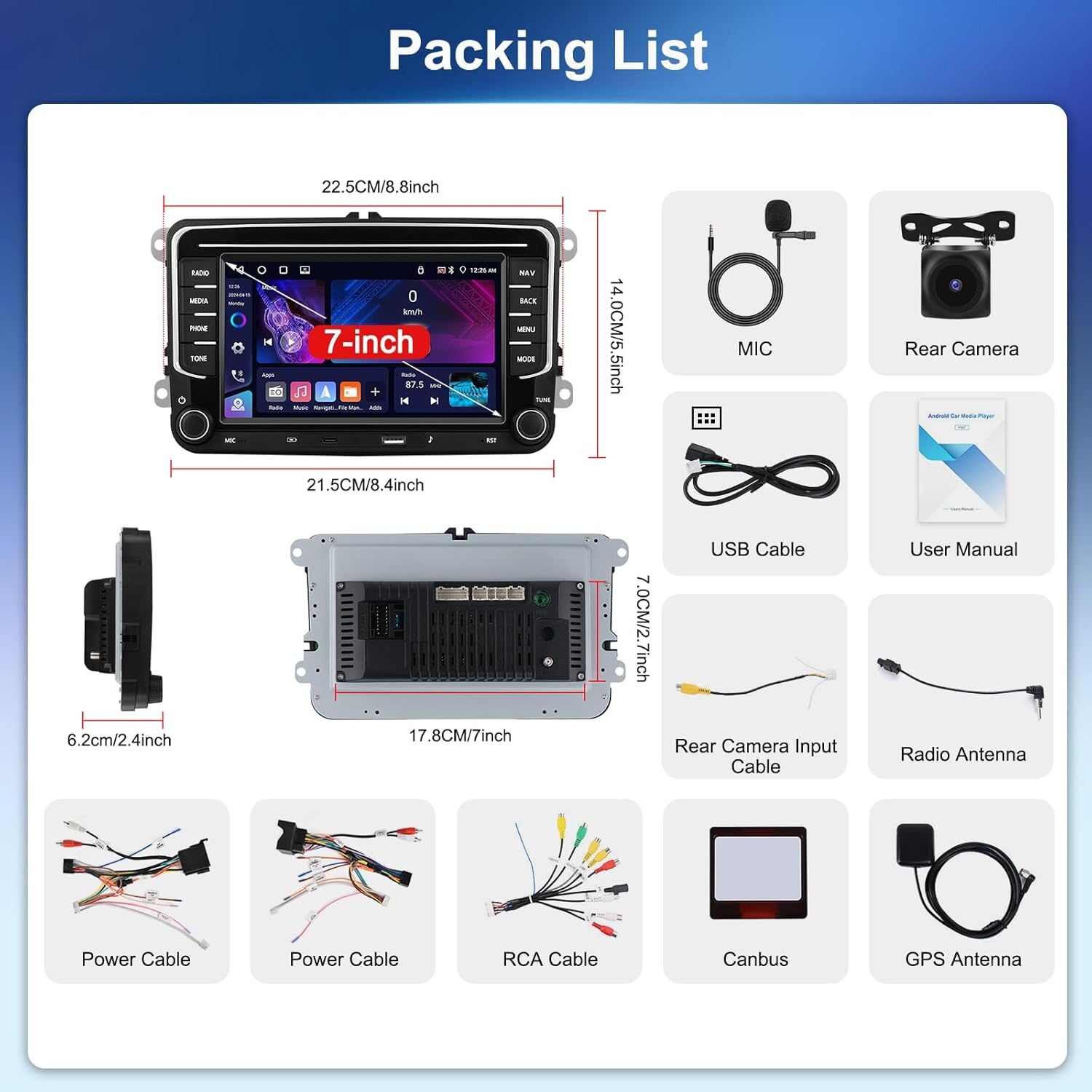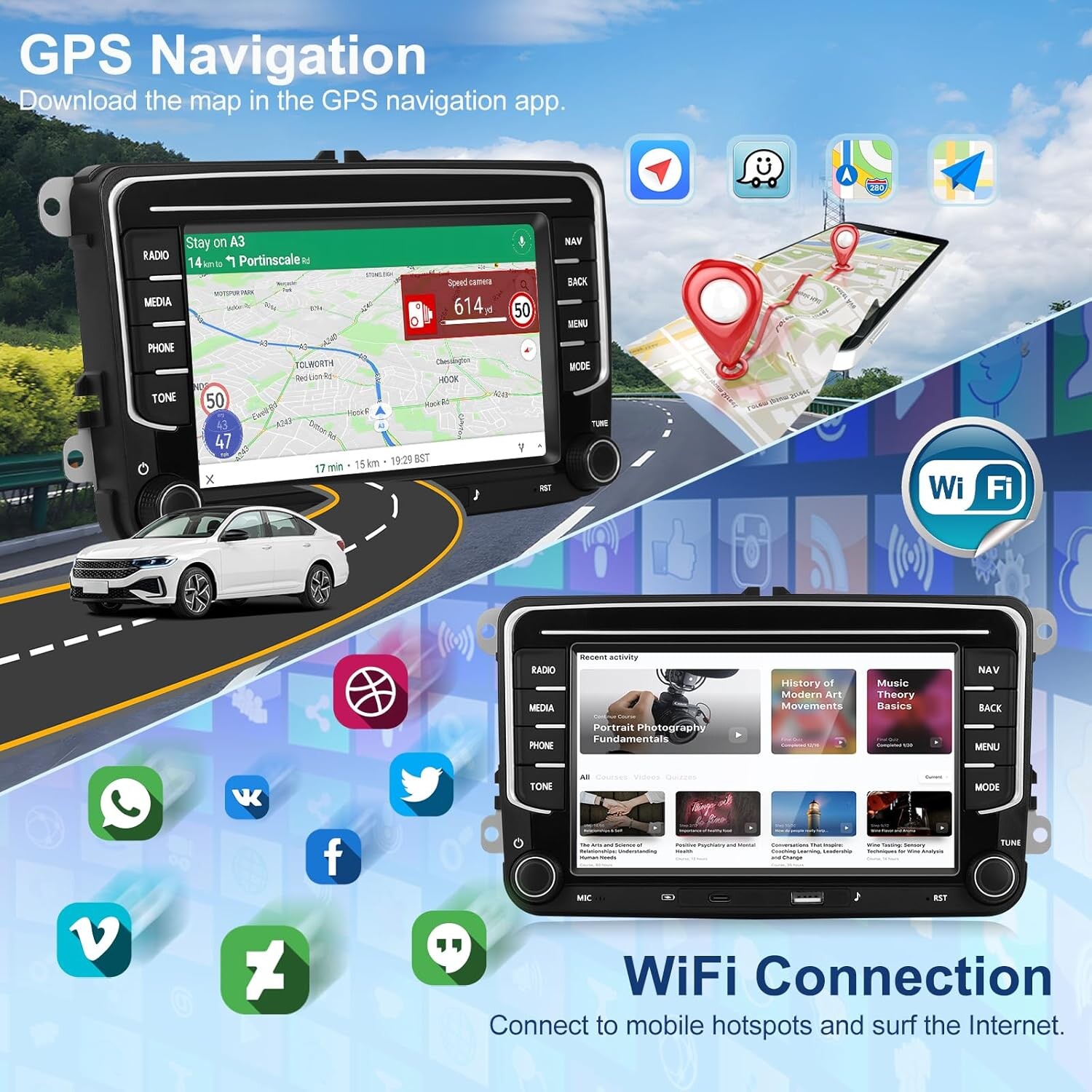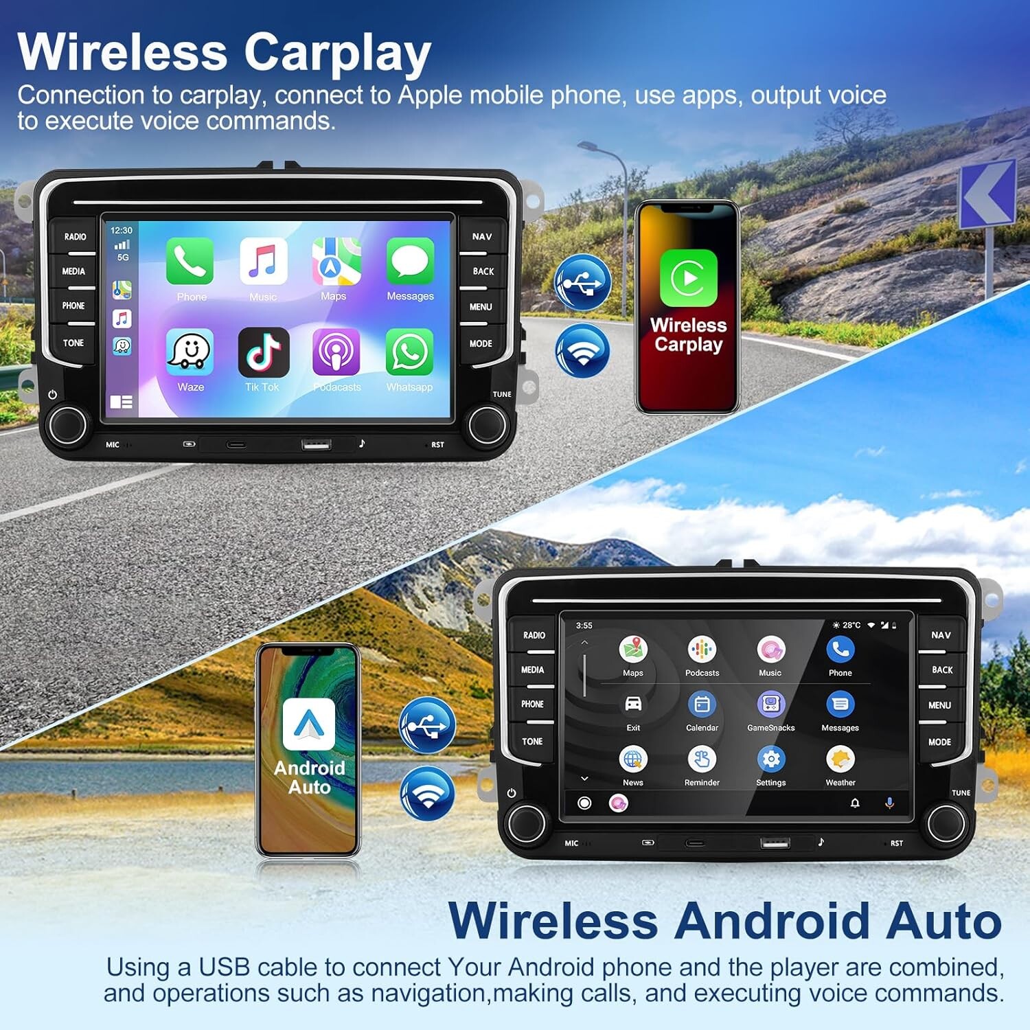 Autoradio Android 15 CarPlay Sans Fil 7” – Compatible VW/SEAT/SKODA