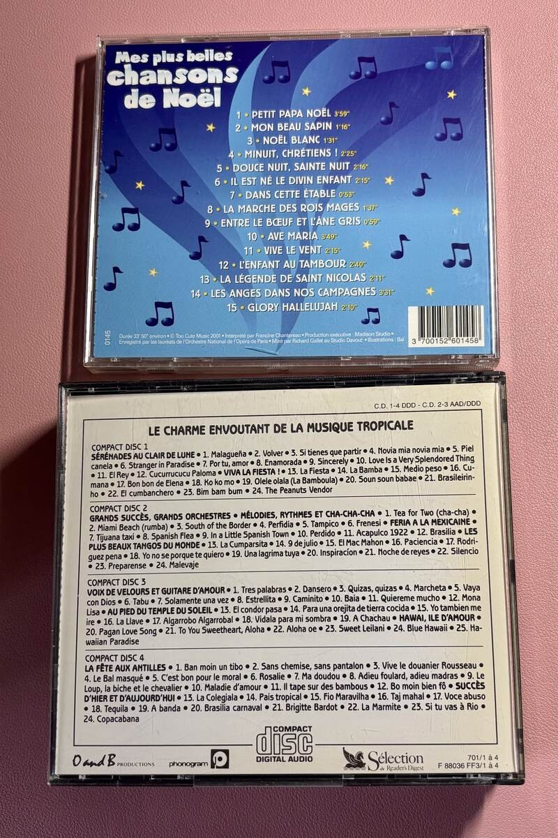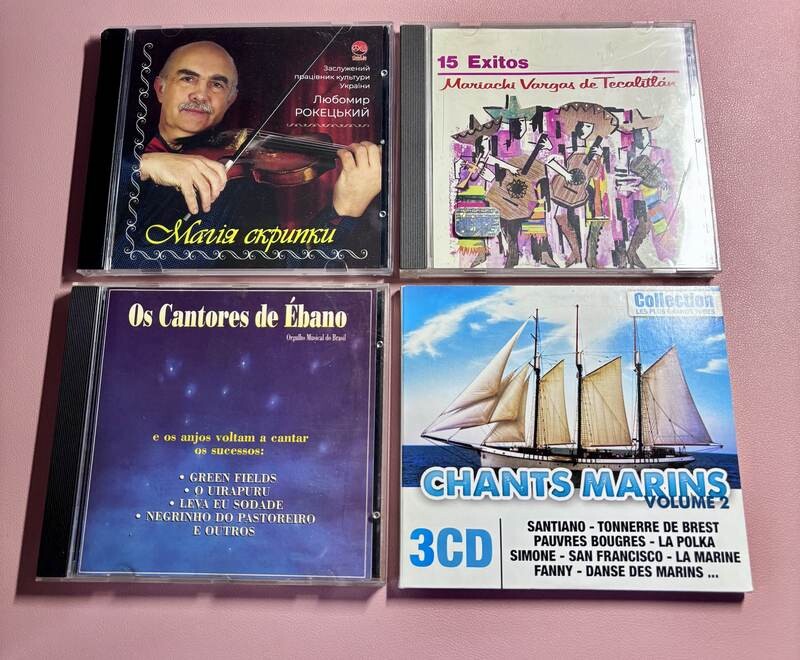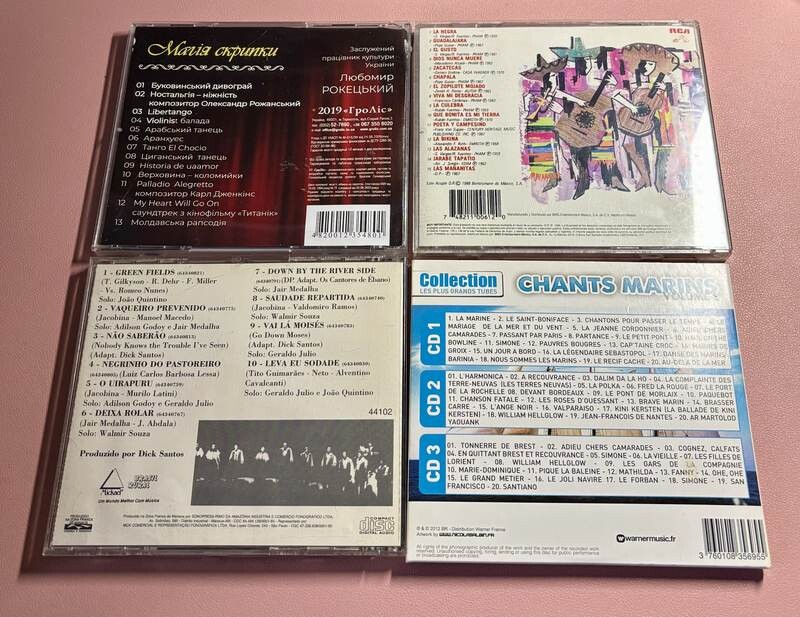 15 Éxitos de Mariachi Vargas de Tecalitlán (musique mexicaine), Os Cantores de Ébano (Brésil), Mes plus belles chansons de Noël, un CD de musiques folkloriques ukrainiennes, Mania Ckpunkku, le coffret Musique Tropicale (sélection Reader’s Digest – 3 CD) et Chants Marins – volume 2 dans la collection Les Plus Grands Tubes.