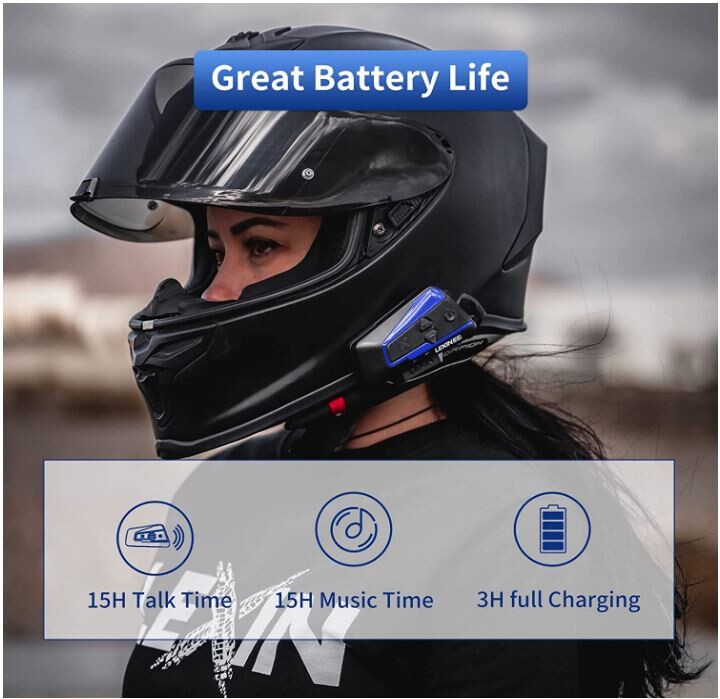 Longue durée de vie de la batterie et IP67 Imperméable: 800mAh, la batterie peut fournir une durée de de 10 à 15 heures et 350 heures de veille. Avec le port de charge Type-C, il ne faut que 3 heures pour recharger complètement. LX-B4FM est étanche, vous pouvez faire de la moto ou du ski par tous les temps.