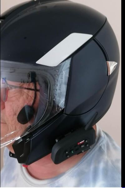 " Je suis agréablement surpris par cet intercom de qualité. Je viens à l'instant de le tester. Il arrive bien emballé dans son carton. Il ne manque rien et il est facile à installer dans mon casque Jet. On me fait remarquer que j'ai mis le micro un peut haut sous l'œil et au milieu de la joue mais j'ai mes raisons.