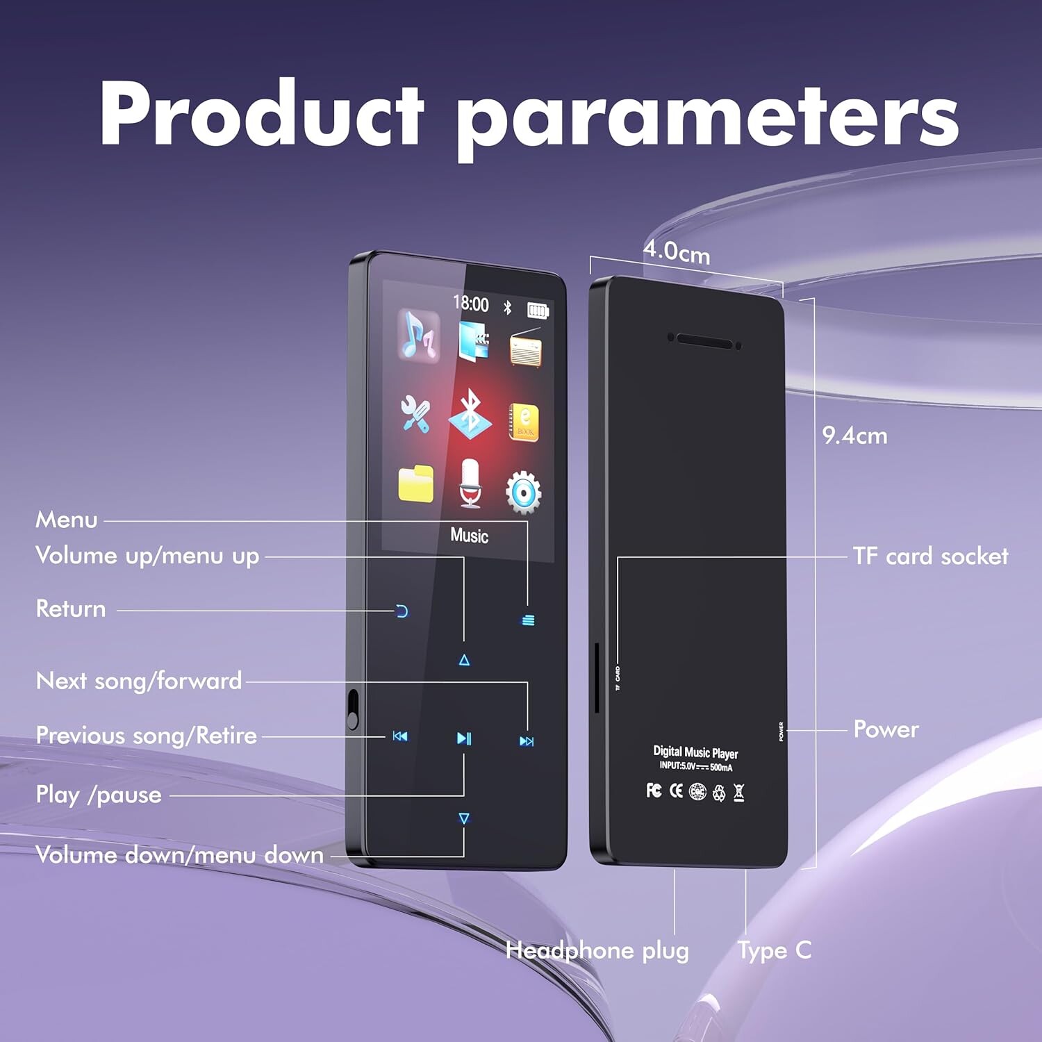 Avec ses 64 Go de mémoire interne, stockez des milliers de morceaux et ajoutez jusqu’à 128 Go supplémentaires via carte micro SD (non incluse). Sa batterie 500 mAh offre une autonomie de 40 heures, idéale pour les longs voyages ou les sessions d’écoute prolongées.