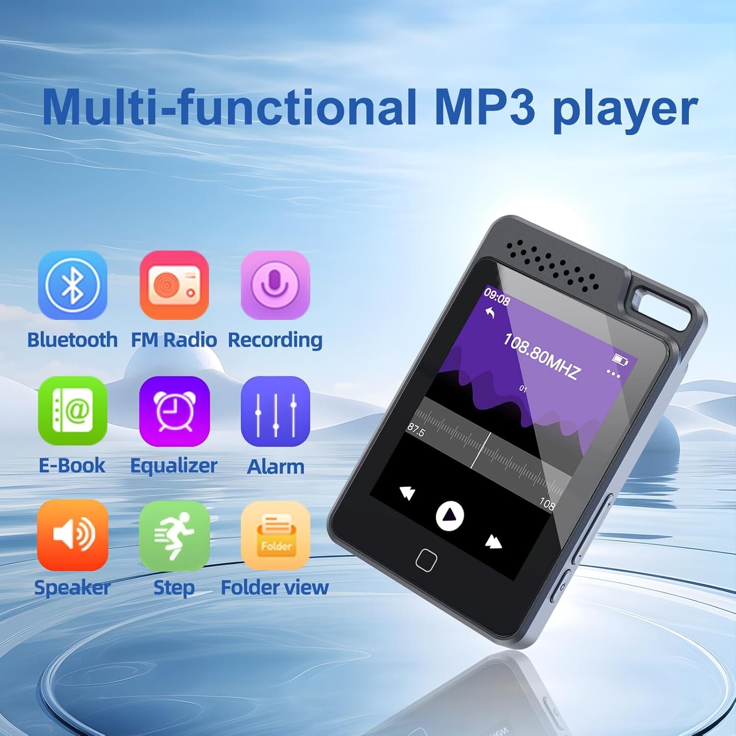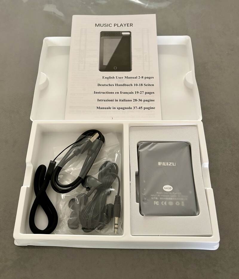 - **Fonctionnalités :** Reprise de lecture, signets, égaliseur, réveil, radio FM, enregistreur, podomètre et prise en charge de 28 langues.