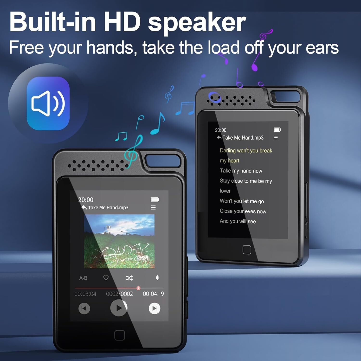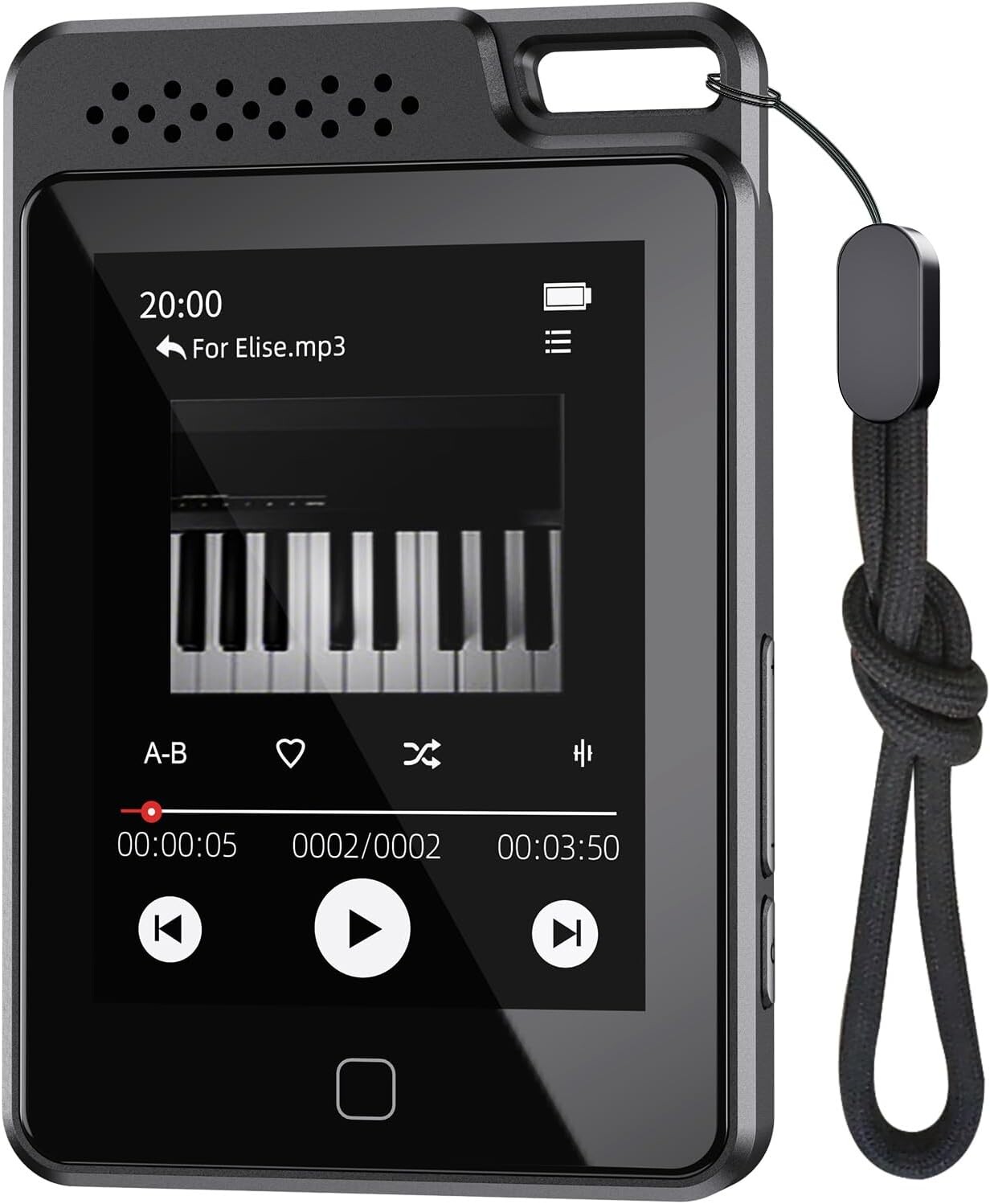 Ce lecteur MP3 de Tihoosky est un appareil élégant et durable, fabriqué en métal et en verre, et équipé d'une lanière pour une portabilité facile. Il est idéal pour les activités en extérieur, les voyages et les promenades.