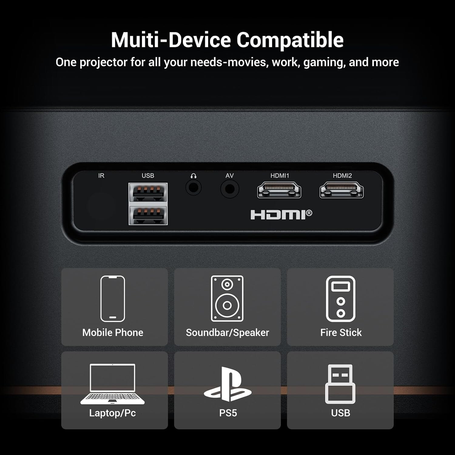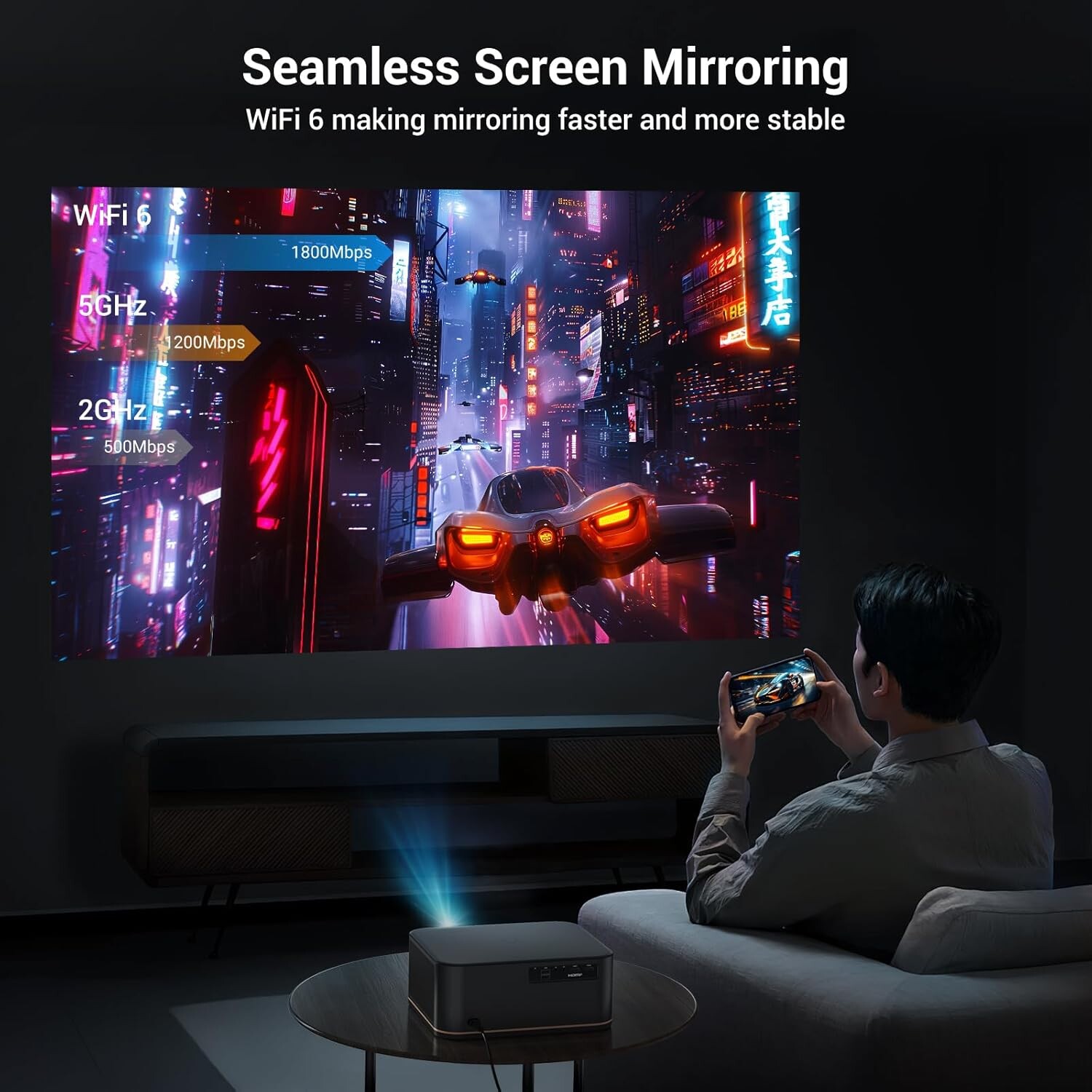 Vidéoprojecteur 4K Intelligent HAPPRUN – 1500 Lumens ANSI | Wi-Fi 6 | Bluetooth 5.2