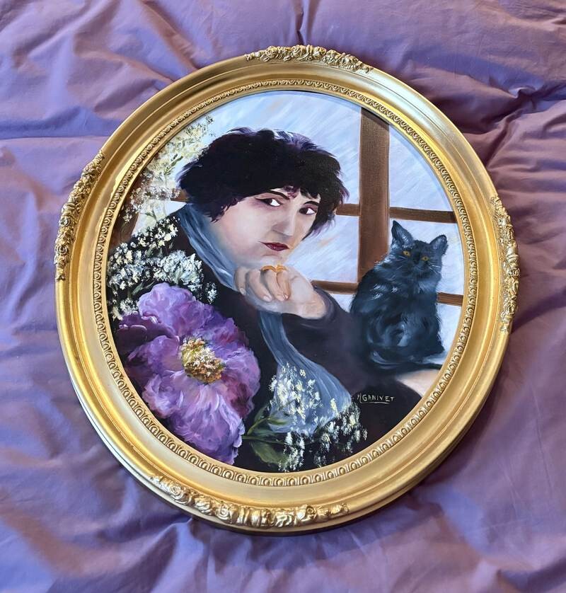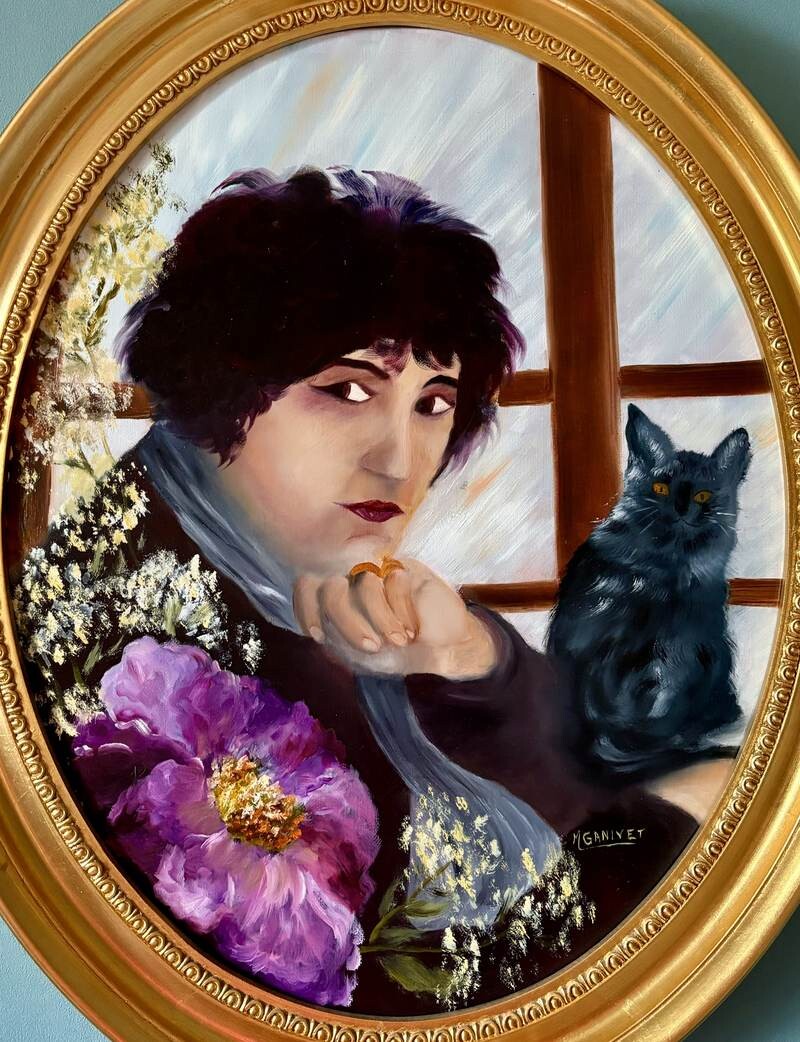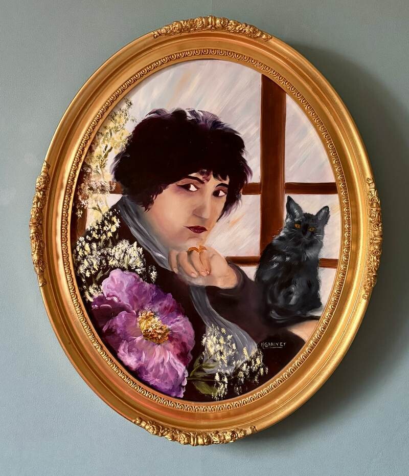 Le choix de représenter l'écrivain Colette ajoute également une couche de profondeur, car elle était connue pour sa connexion profonde avec la nature et les animaux, en particulier les chats. Le chat noir à ses côtés pourrait être un clin d'œil à cet aspect de sa personnalité.