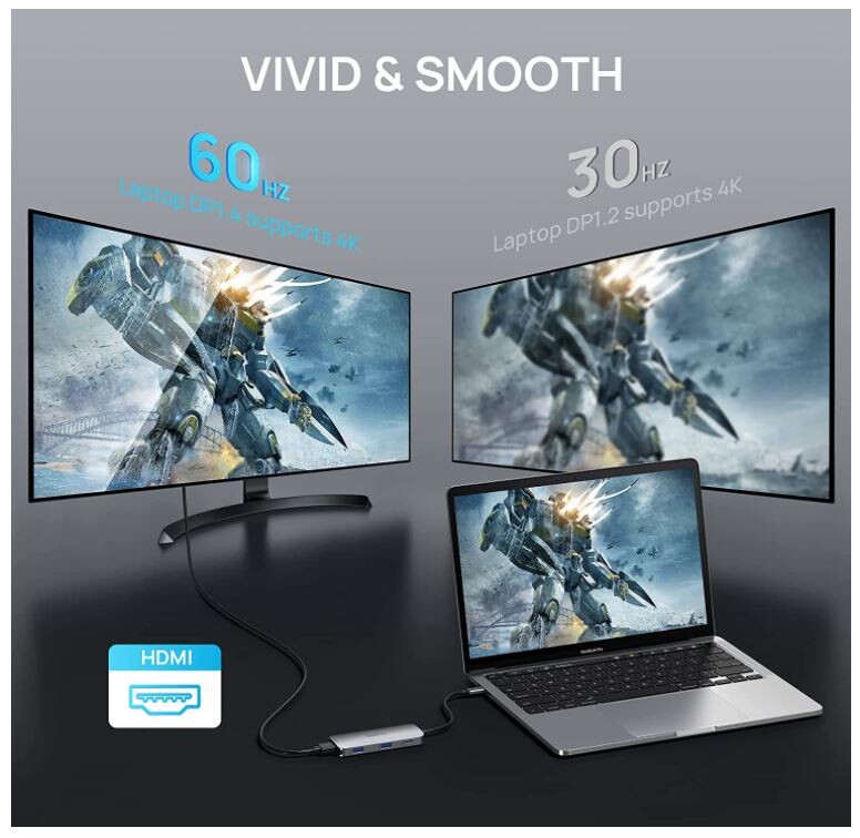 Hub USB C supporte la résolution jusqu'à 4K@60Hz Vous pouvez dupliquer ou étendre l'affichage sur un deuxième moniteur. USB C hub convient pour le visionnage de films et les présentations de conférences.
