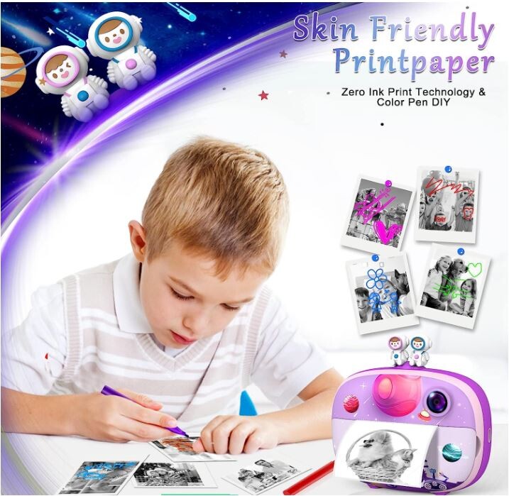 Cet appareil photo instantané est spécialement conçu pour les enfants de 3 à 12 ans et dispose d'un écran de protection des yeux de 2,4 pouces et d'une technologie avancée d'impression thermique sans encre pour imprimer sans toner. Tous les matériaux sont exempts de substances nocives comme le BPA. Il est également facile à utiliser, les enfants peuvent simplement appuyer pour capturer et imprimer instantanément des images en noir et blanc sur du papier doux. Sans danger pour que les parents soient tranquillisés. (Contient 3 rouleaux de papier thermique avec un maximum de 180 impressions)
