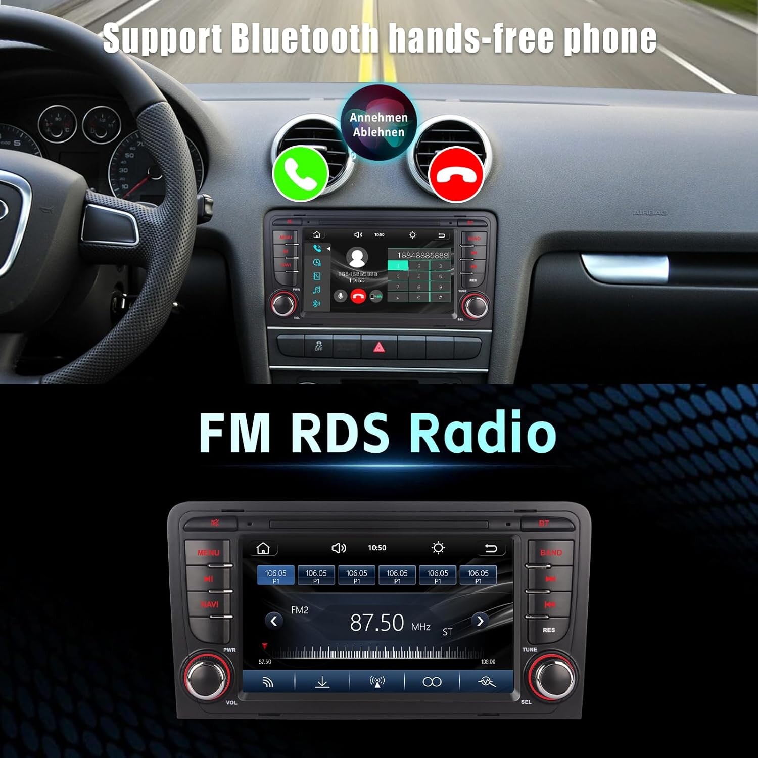 Conçu exclusivement pour les Audi A3 8P de 2003 à 2012, cet autoradio est également compatible avec les modèles S3 (2006–2012) et RS3 Sportback (2011–2012). Dimensions exactes : 245 × 138 mm – merci de vérifier la taille avant l’achat.