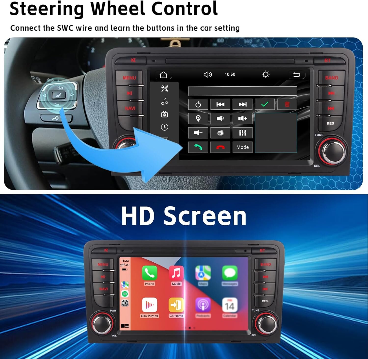 Autoradio Android CarPlay – Compatible Audi A3 (2003-2012), S3 & RS3