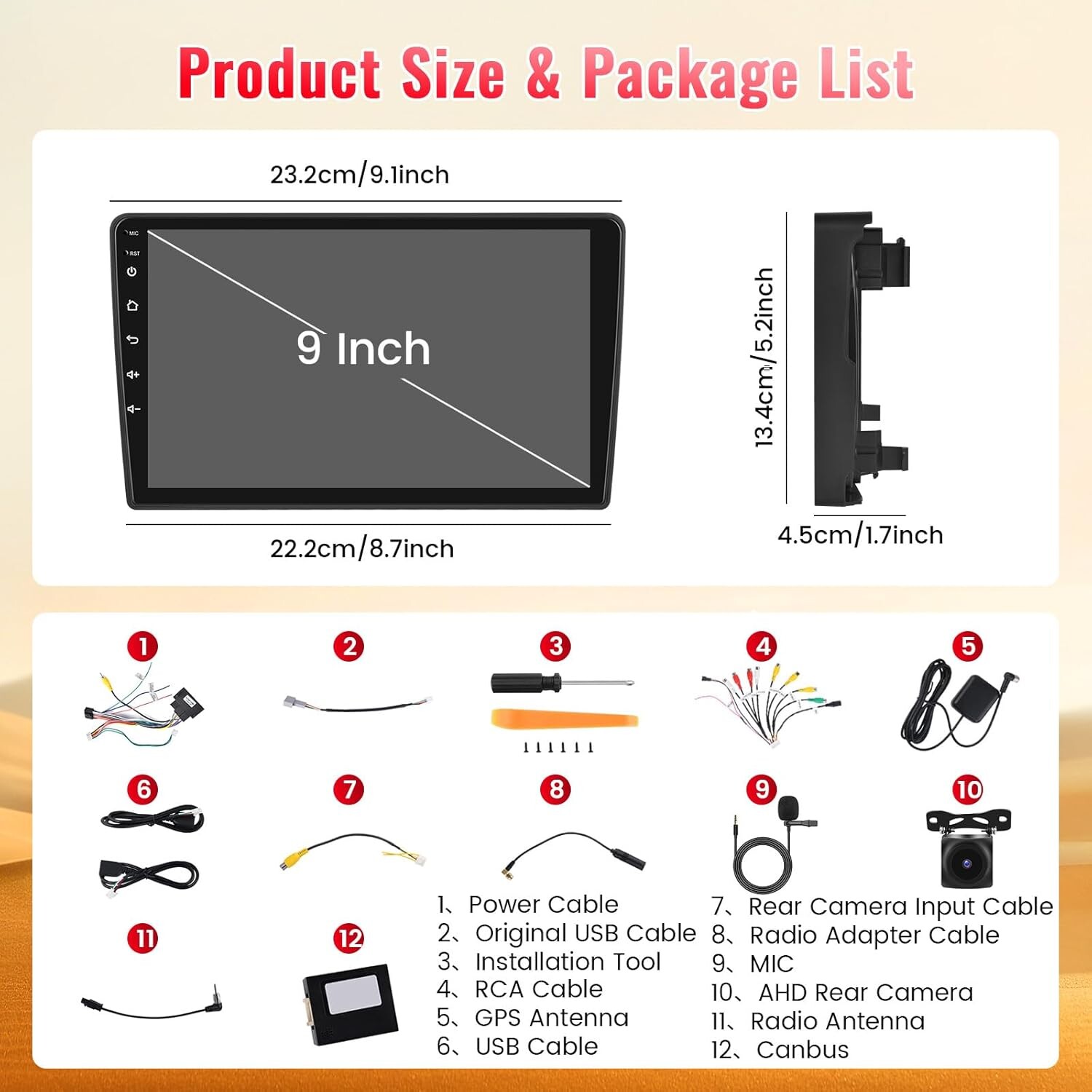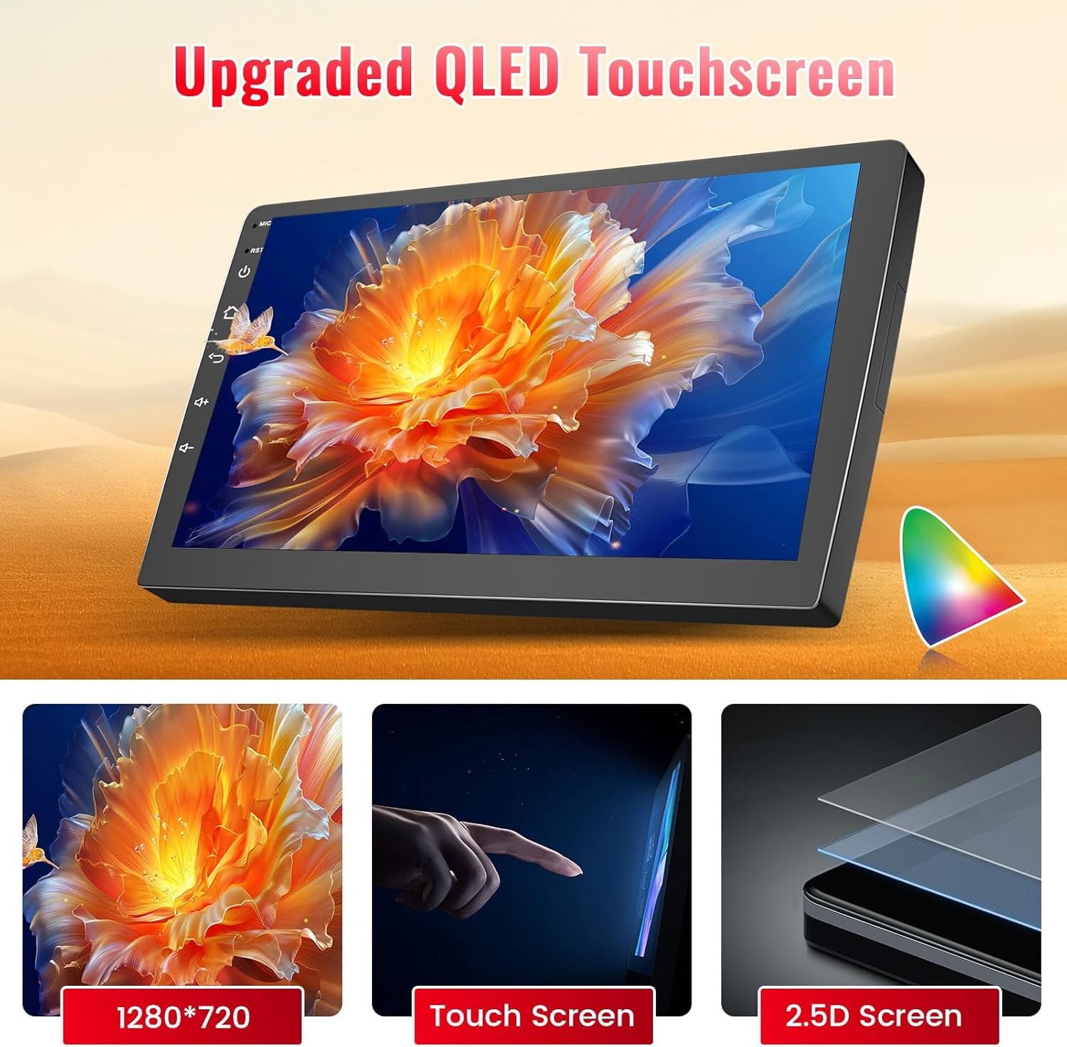 • Écran tactile IPS 9 pouces (1280x720) offrant fluidité et confort visuel pour la navigation, la musique et les applications multimédias.