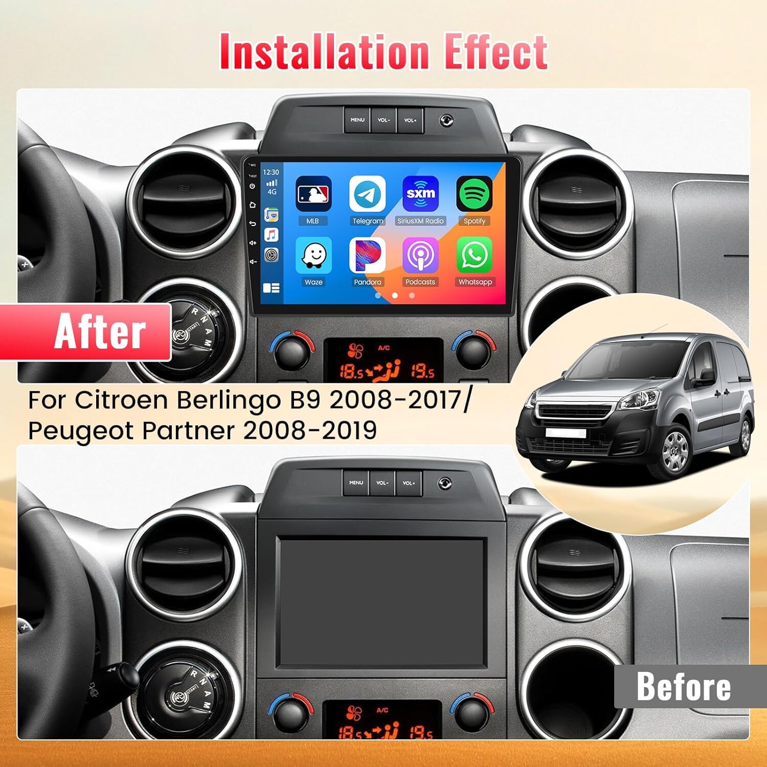 Autoradio Android 2 DIN – Citroën Berlingo B9 (2008-2017) / Peugeot Partner (2008-2019)