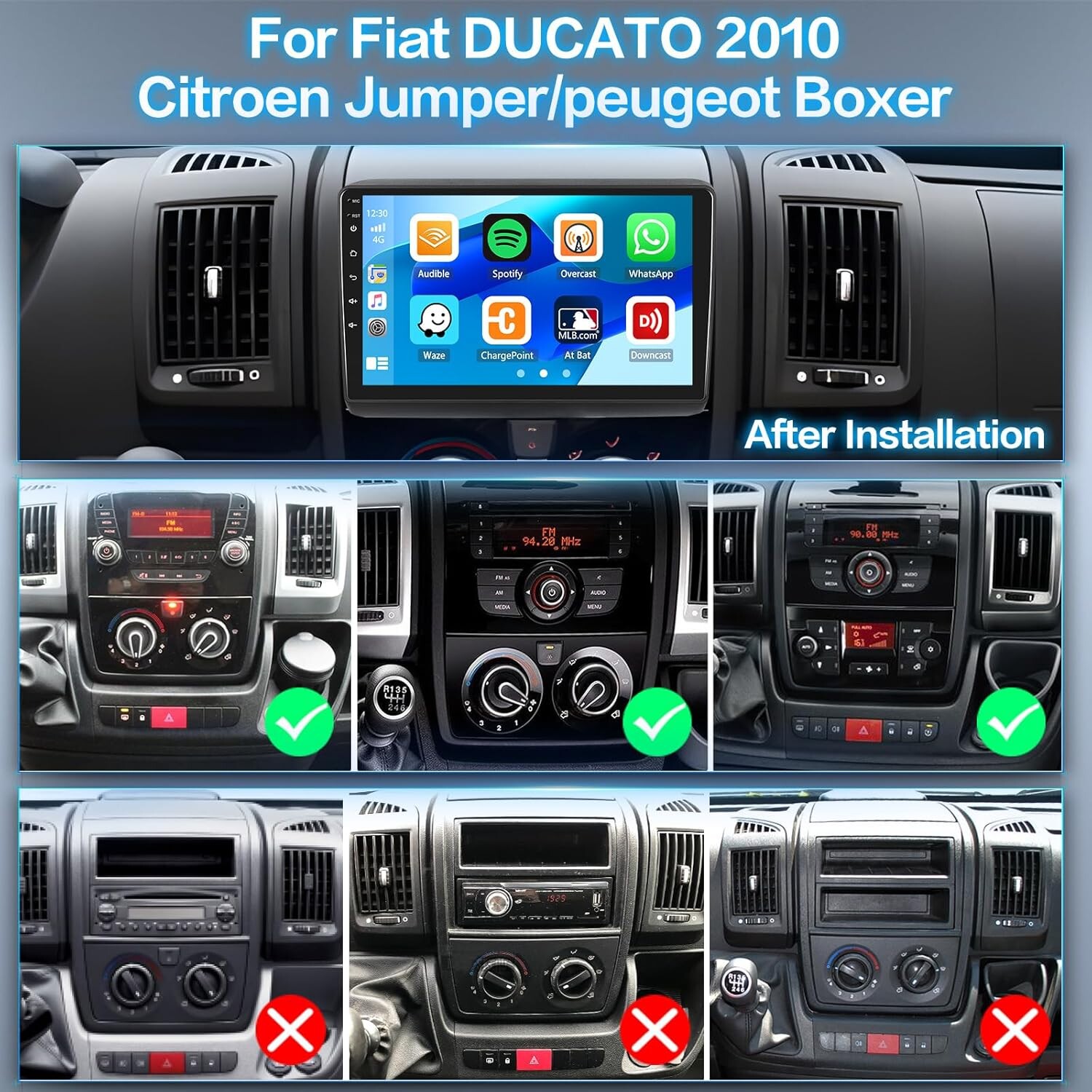 Autoradio Android 13 CarPlay/Android Auto – Compatible Fiat Ducato, Citroën Jumper, Peugeot Boxer (après 2010)
