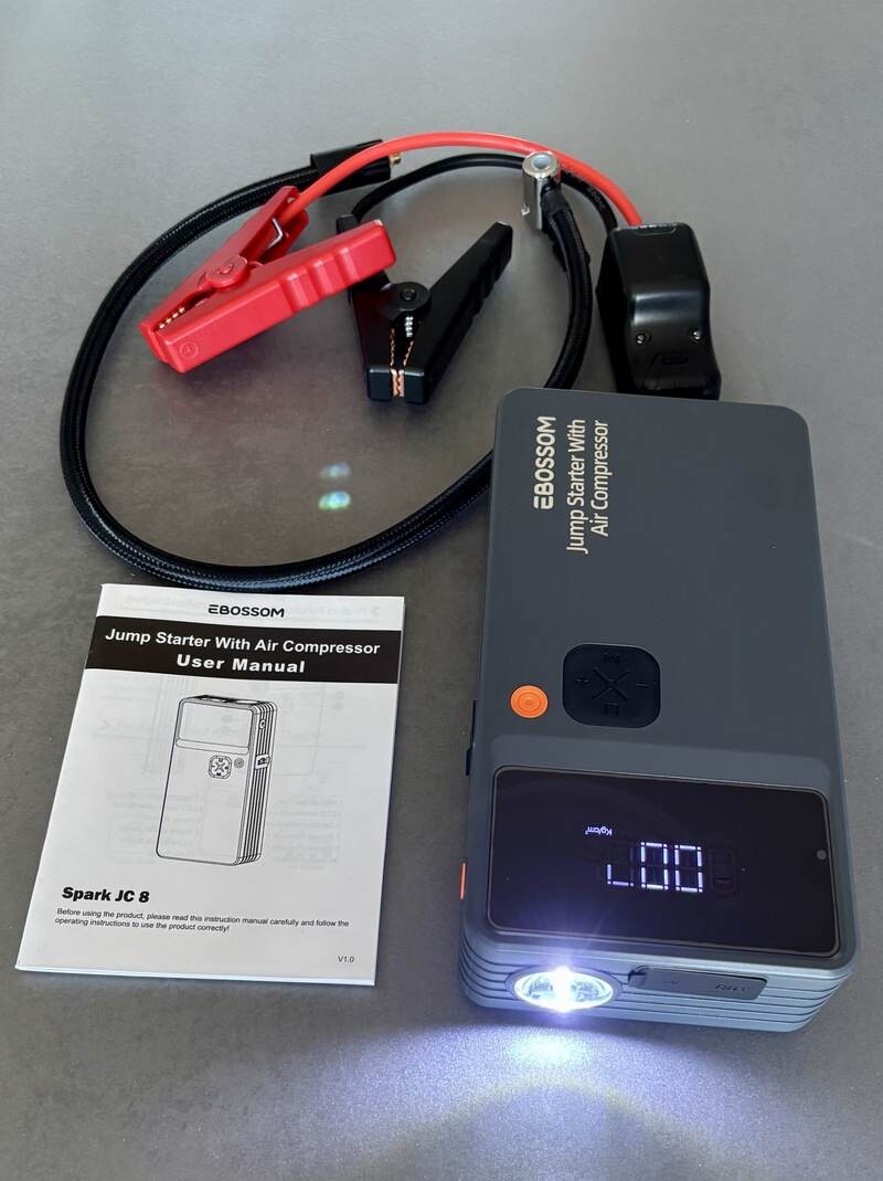 Vous cherchez un outil fiable pour ne jamais rester bloqué sur la route ? Ce booster d’urgence multifonction est à la fois un démarreur de batterie puissant (jusqu’à 6.0 L essence ou 3.5 L diesel), un compresseur d’air portable, une lampe LED et une batterie externe USB-C !