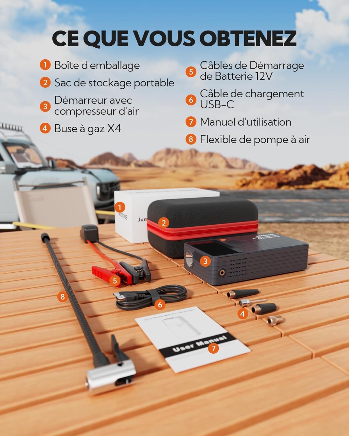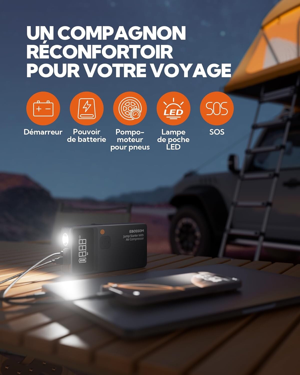 ✔ Démarrage instantané : Pour voiture, SUV, moto… plus besoin d’attendre la dépanneuse.