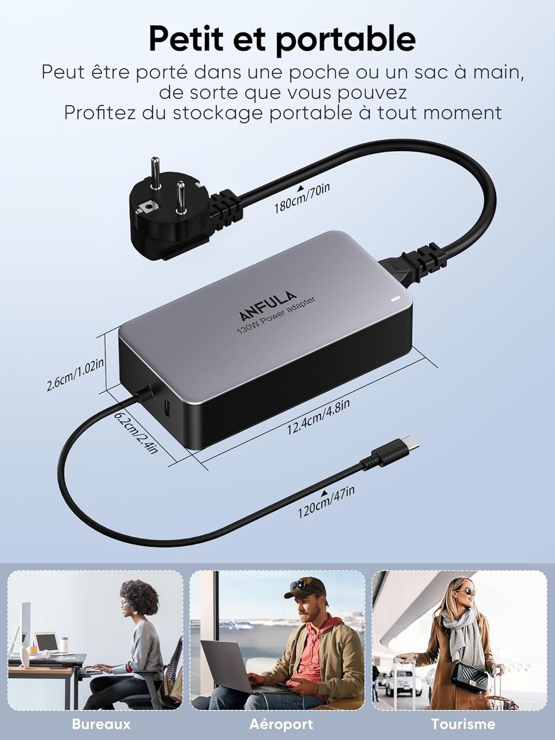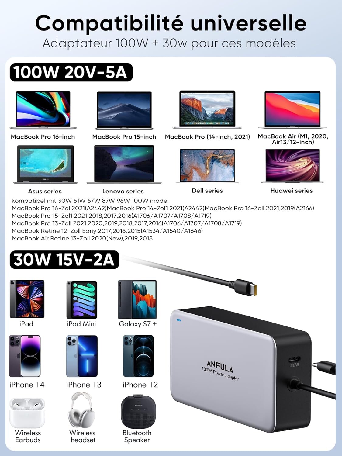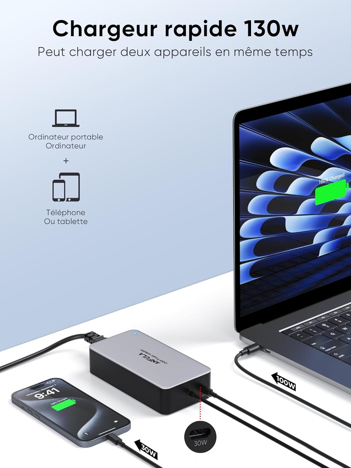 Chargeur polyvalent de 100 W pour MacBook et PC en USB C