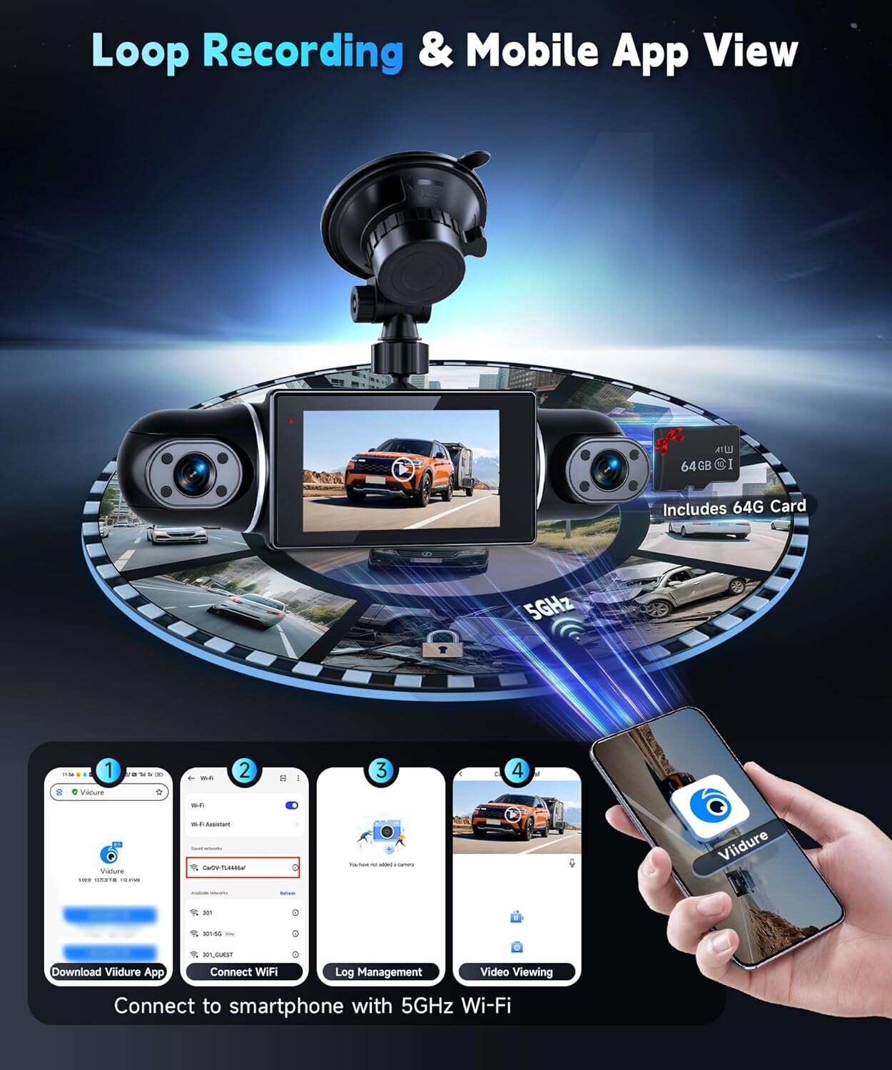 Qualité d’image supérieure : caméra avant en 2K et caméra arrière en 1080P, objectif grand angle 150°, vision nocturne optimisée.