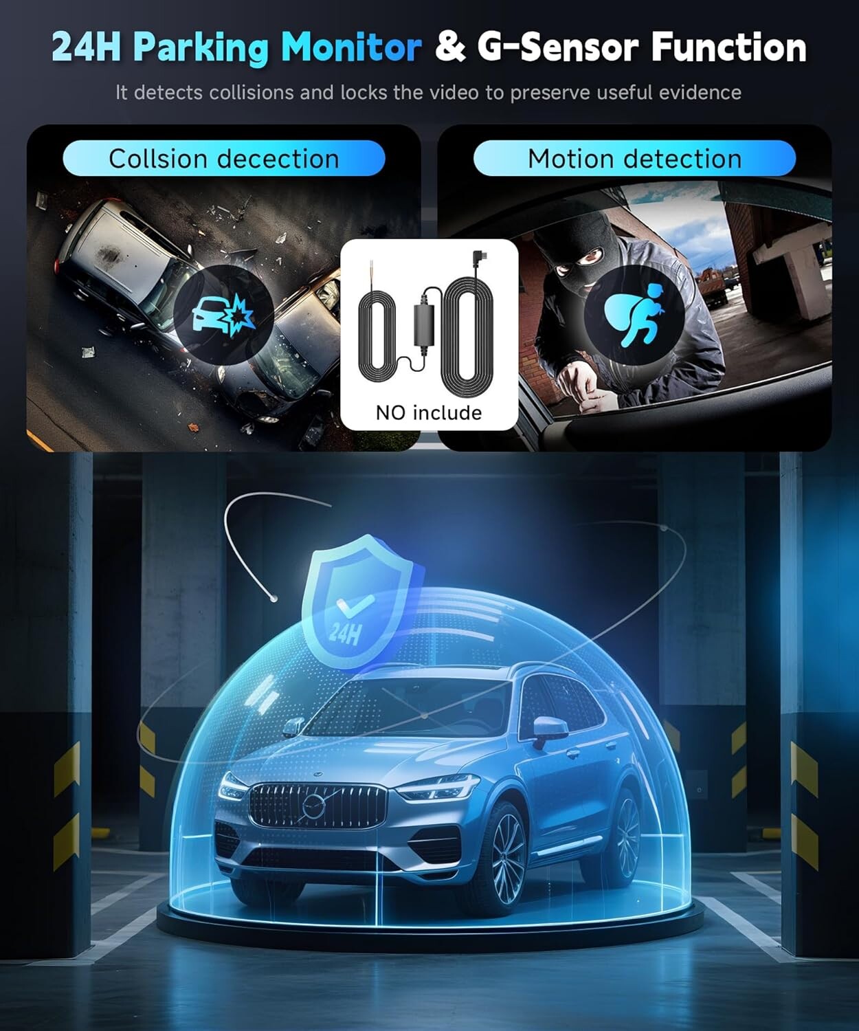 Surveillance 24/7 : détection automatique des collisions grâce au capteur G, enregistrement d’urgence et mode stationnement (kit câblage en option).
