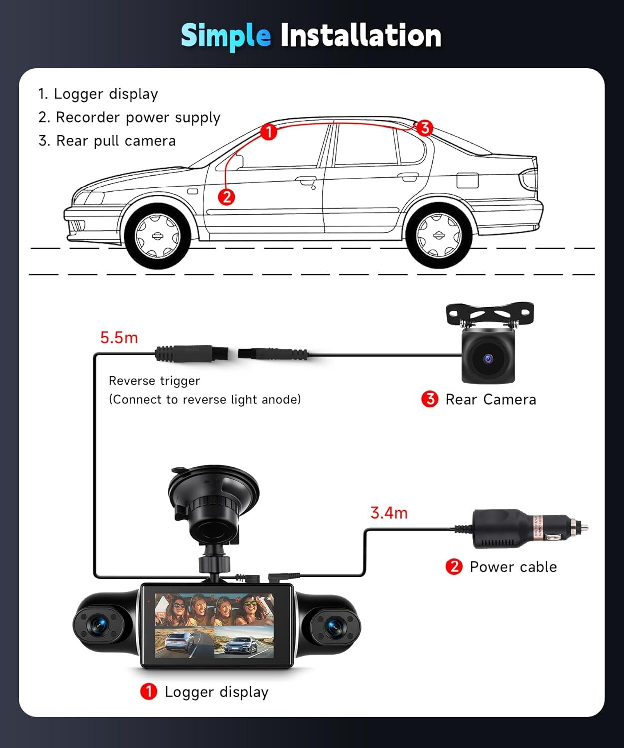 Dashcam 2K + 1080P Avant et Arrière – Sécurité Totale 360°