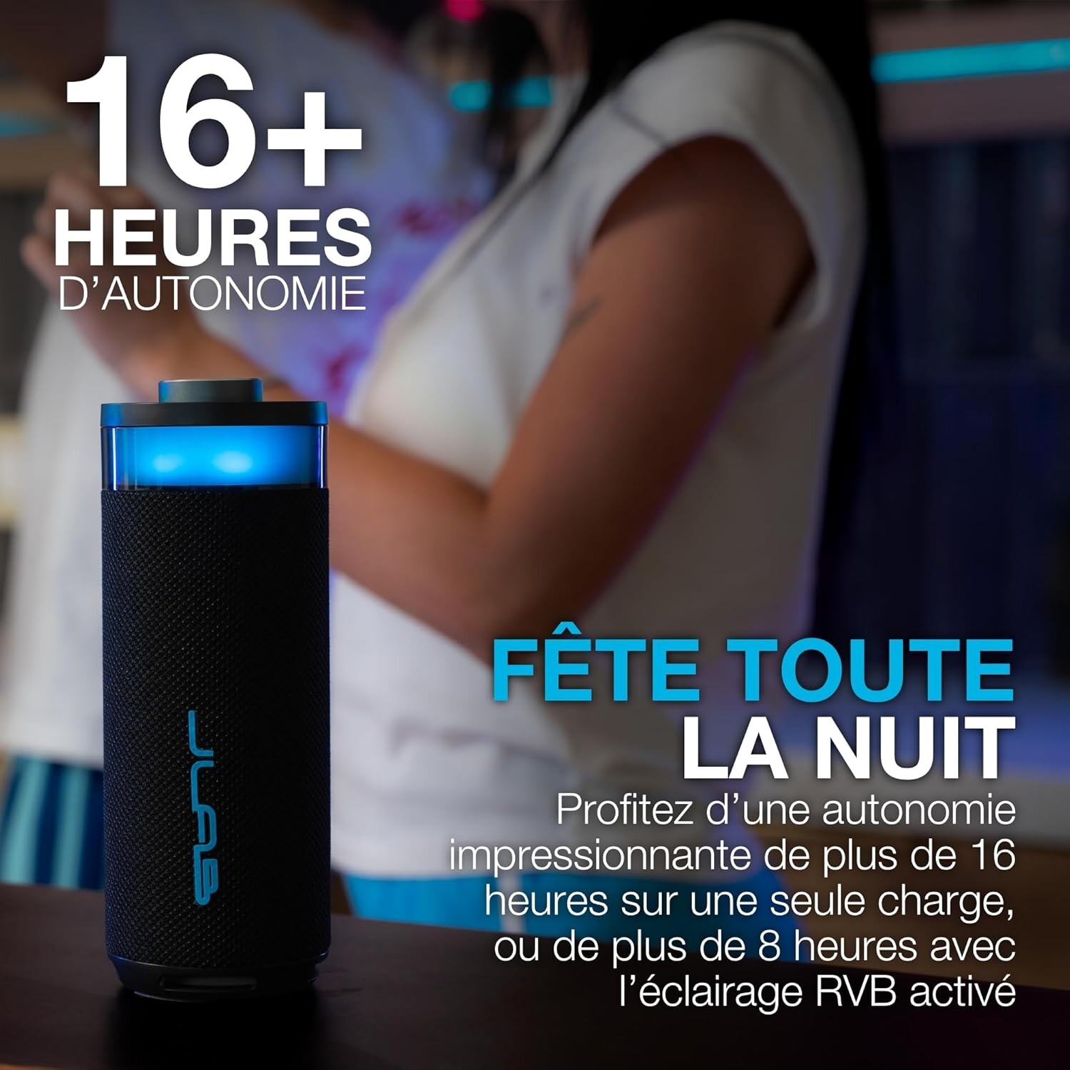 - **Autonomie longue durée** : profitez de **16 heures** d’écoute continue (ou 8 heures avec les lumières RGB activées).