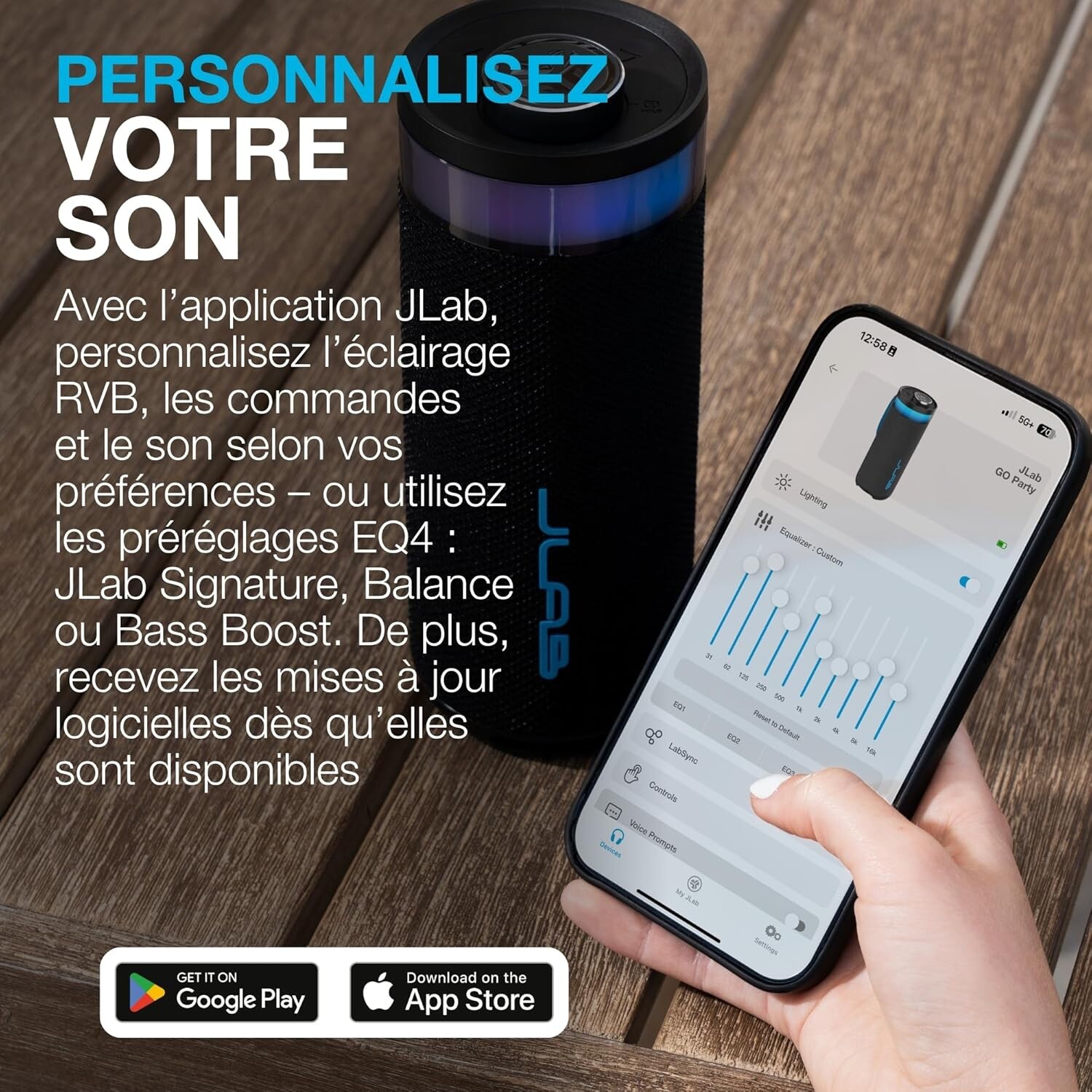 - **Connexion Bluetooth instantanée** et **préréglages EQ4** pour ajuster votre expérience sonore (Signature, Balance, Bass Boost).