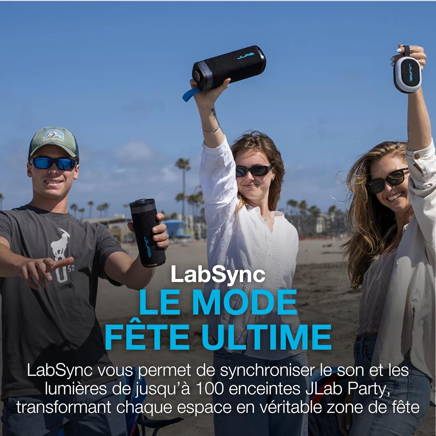 - **Technologie LabSync** : connectez jusqu’à **100 enceintes** simultanément pour une expérience sonore synchronisée et festive.
