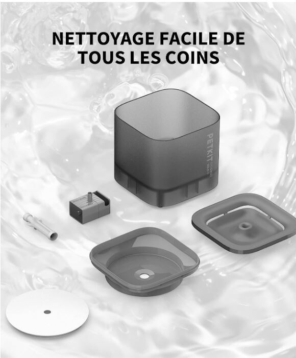 PureDrink, Lavable: Cette fontaine à eau possède un système de recirculation avec des pièces entièrement démontables pour le nettoyage, ce qui garantit une eau de boisson saine pour les chats, et autres animaux domestiques. Si la pompe détecte un manque d'eau, elle s'arrête automatiquement. Le fontaine à eau peut être placé à différents endroits tels que les chambres, les balcons, les salons etc.. La capacité de 1,85 litre est idéale pour les animaux de taille petite à moyenne.