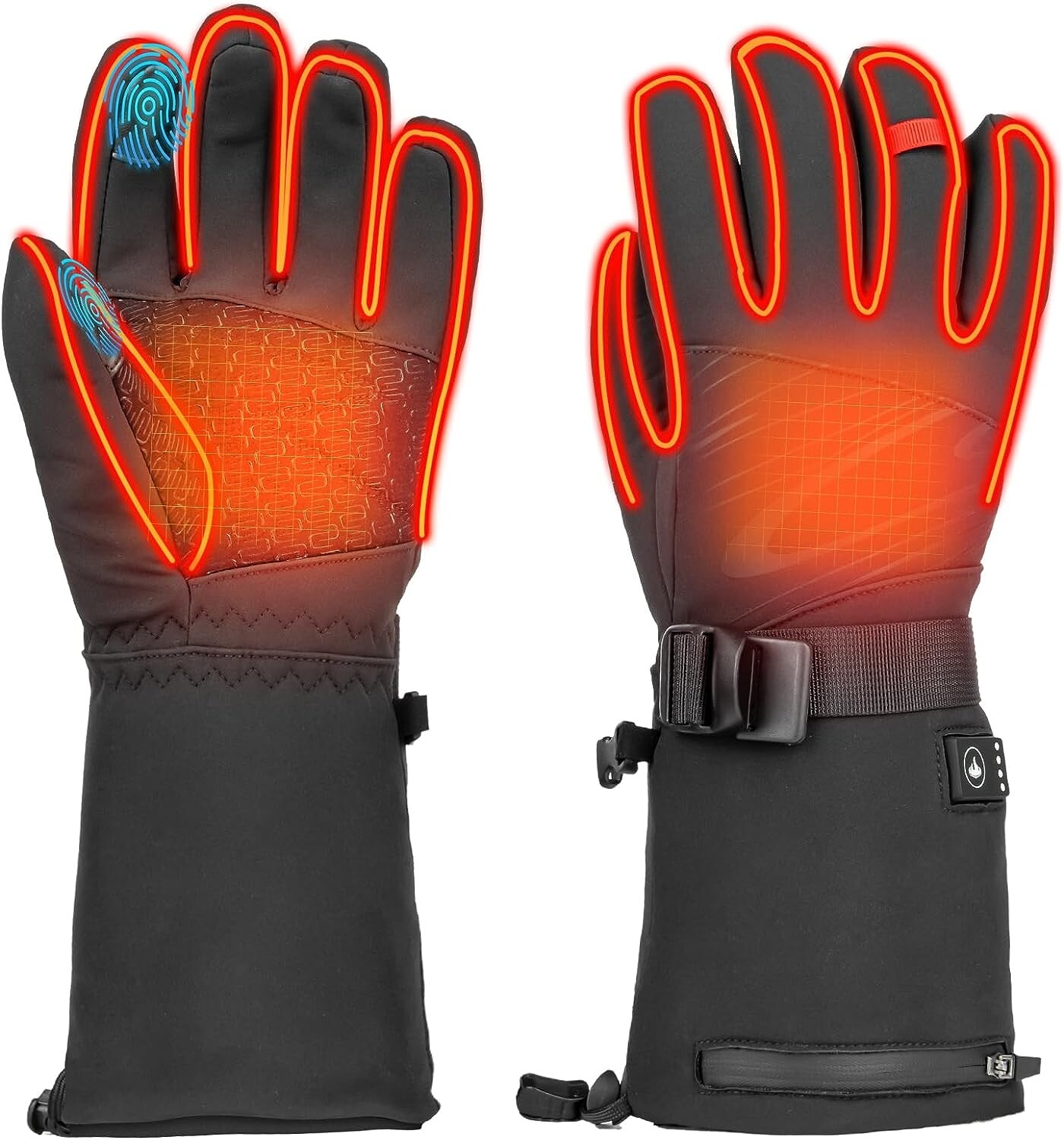 【Chauffage Rapide et Sûr】 Le gant chauffant chauffe rapidement toute la main en quelques secondes, l'élément chauffant atteint non seulement les doigts mais s'étend également jusqu'au bout des doigts, procurant aux mains une chaleur complète. Les poignets ont des serrures télescopiques pour une bonne protection contre le vent.