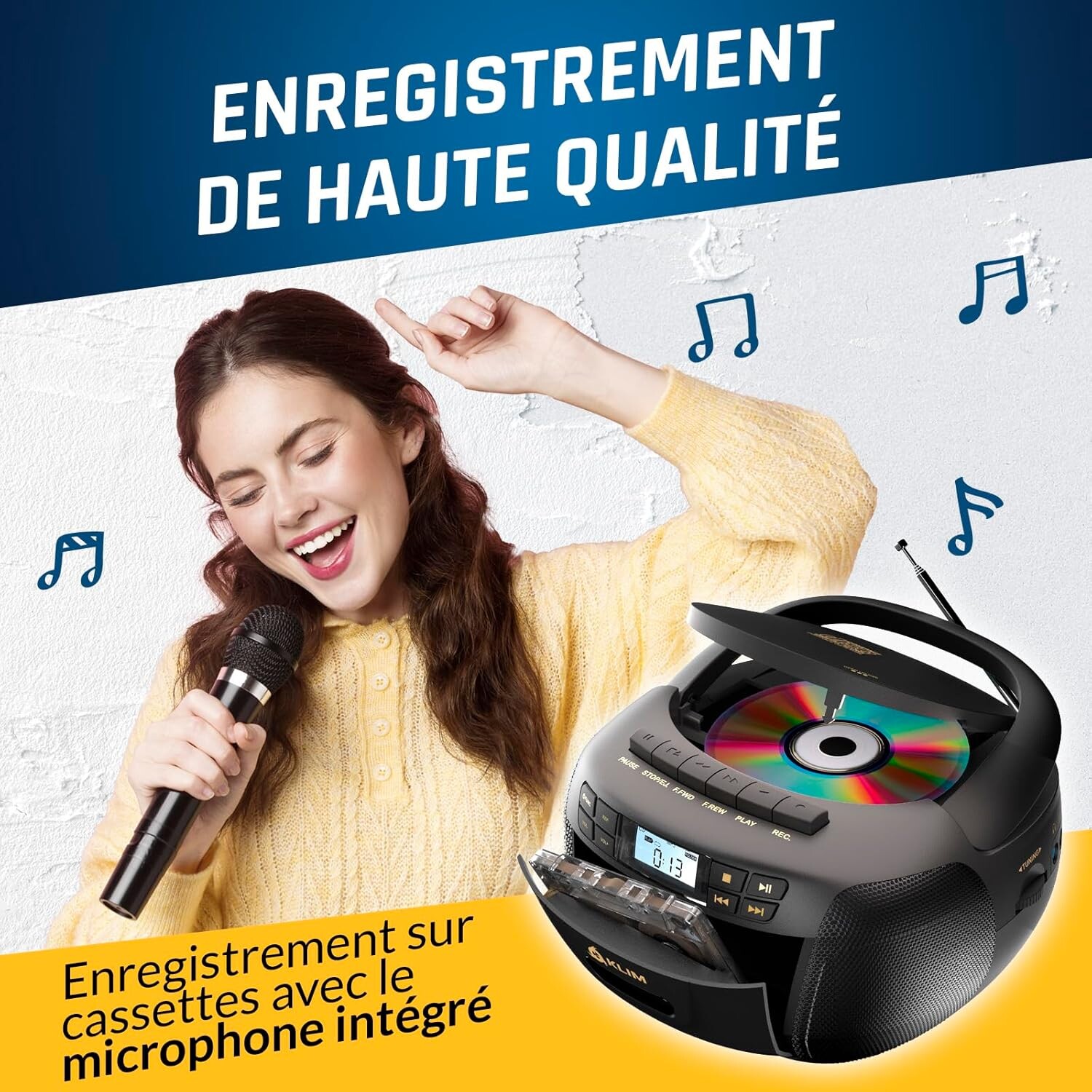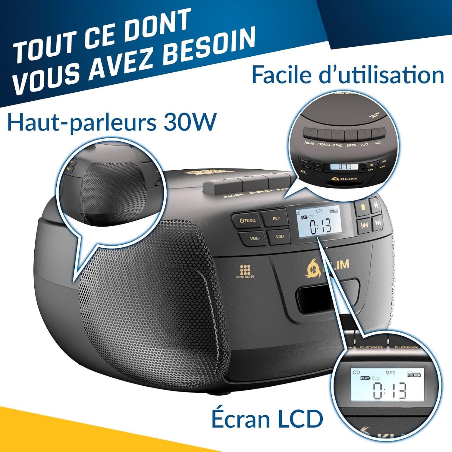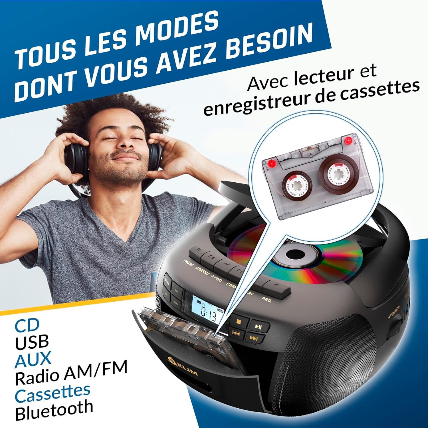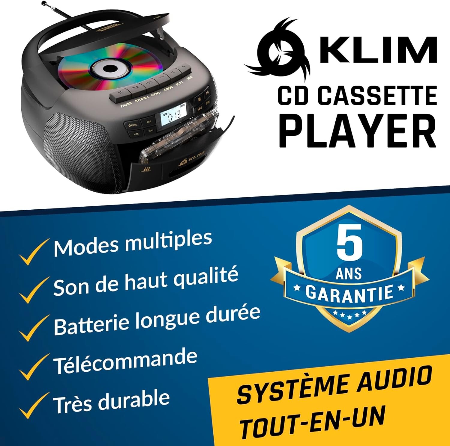 Lecteur CD & Cassette KLIM – Bluetooth, Radio, Télécommande et USB