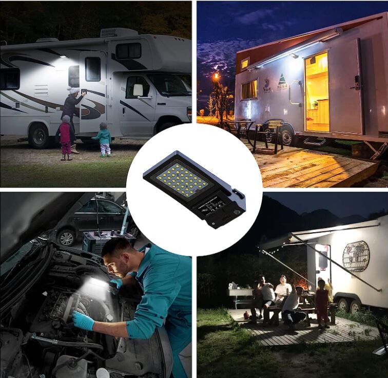 【Lampe d'extérieur magnétique】 une lampe de travail 2023 redessinée se fixe facilement à votre caravane ou à une rambarde à l'extérieur et rend vos déplacements plus pratiques, sans avoir à la recharger en électricité.