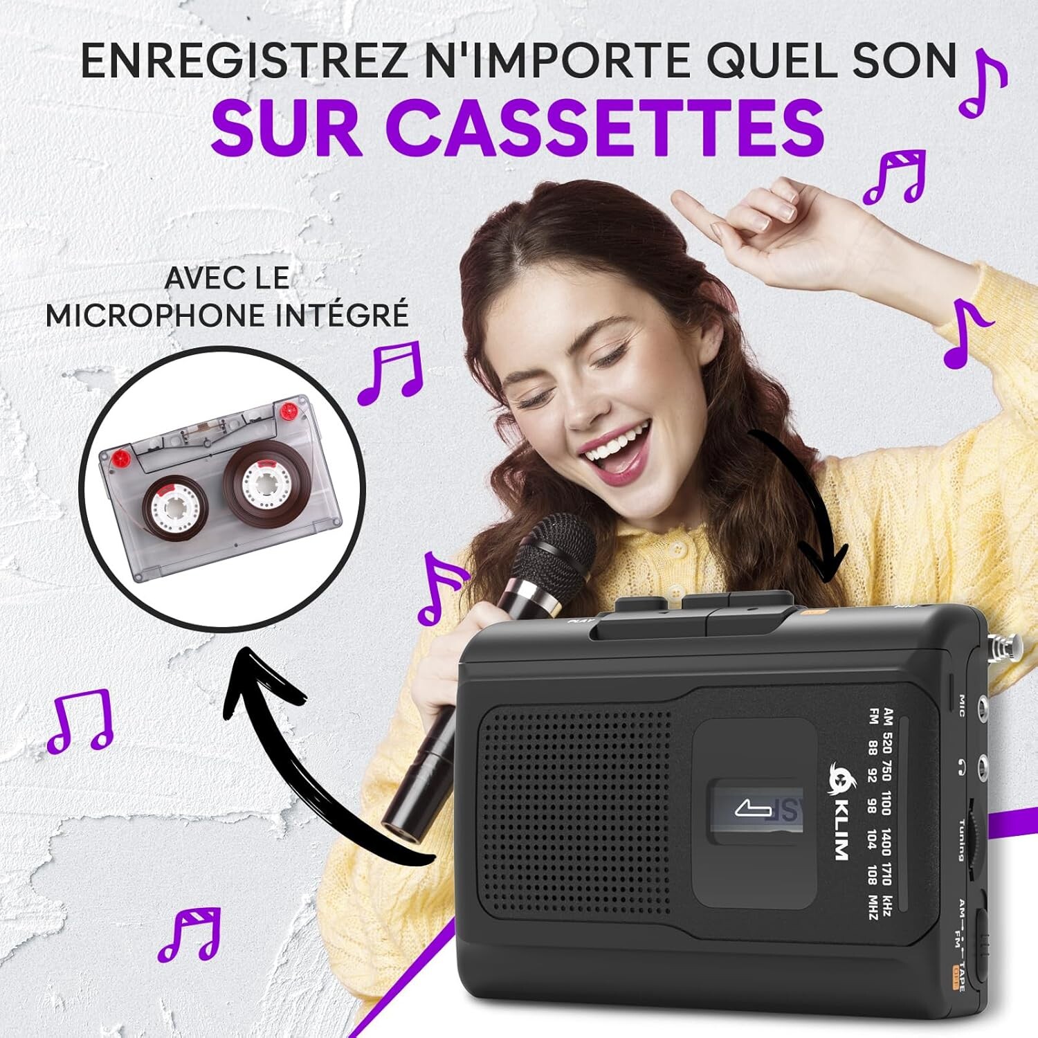 Lecteur de cassettes audio KLIM K8 – Radio + Enregistrement – Neuf