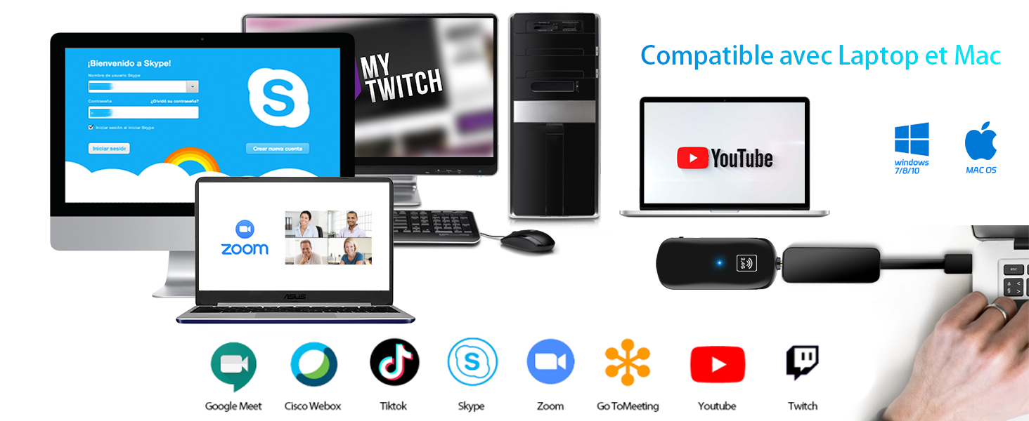 L'oreillette de la marque 1Mii avec microphone est conçue avec la technologie sans fil 2.4G la plus avancée, caractérisée par un faible rayonnement, de faibles interférences, une grande stabilité du signal, une vitesse de transmission rapide et un délai audio court. Remarque : il s'agit d'un microphone sans fil 2.4G et non d'un microphone sans fil Bluetooth ! Il ne peut pas être utilisé avec votre PC, iPhone, iPad, Mac, smartphone, etc.