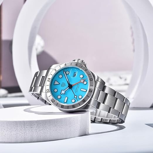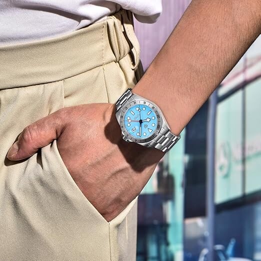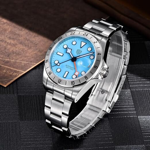Découvrez l’élégance et la performance avec cette montre de luxe pour homme. Son boîtier en acier inoxydable et son cadran en saphir synthétique antireflet offrent un style raffiné et durable. Équipée d’un mouvement automatique japonais NH34 GMT, cette montre permet de suivre l’heure sur deux fuseaux horaires en toute précision. Grâce à sa couronne vissée, l’ajustement de l’aiguille GMT et de la date est intuitif et facile.