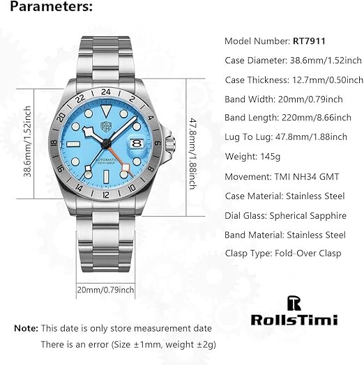 Montre de Luxe Automatique pour Homme - RollsTimi GMT cadran bleu