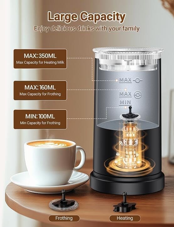 • Grande capacité : mousse jusqu’à 160 ml / chauffe jusqu’à 350 ml de lait.