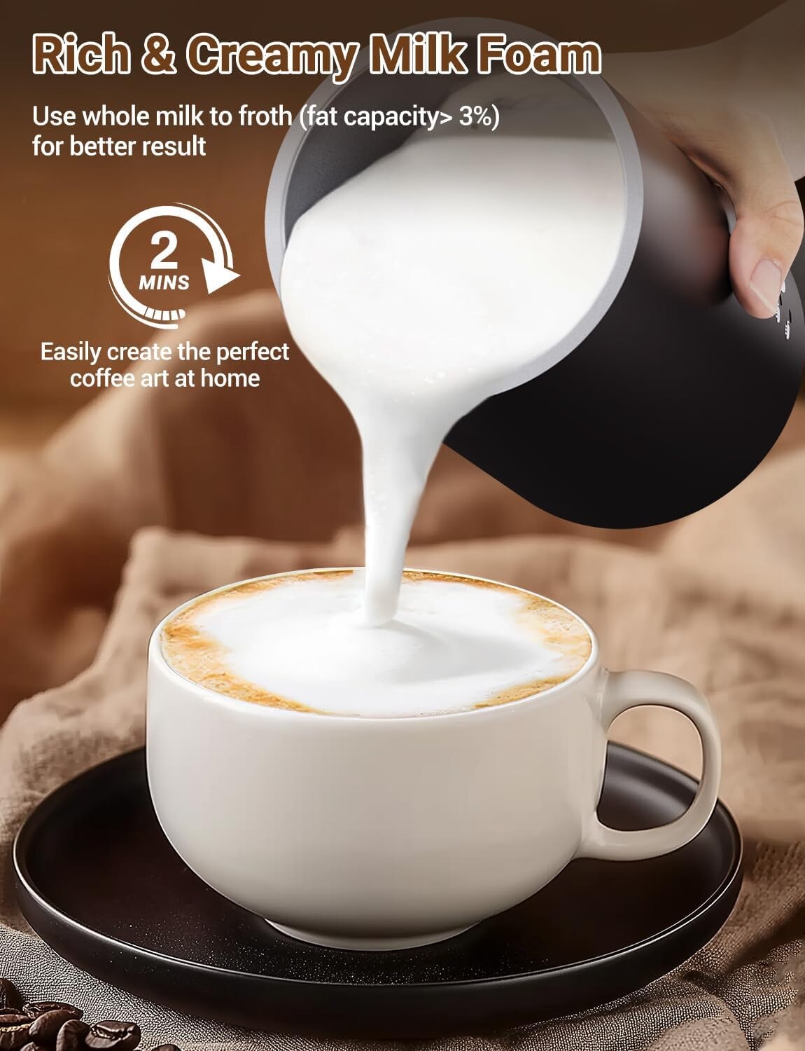 • Compatible lait entier et végétal (soja, avoine, amande) – pour un résultat optimal, privilégiez un lait à +3% de matières grasses.