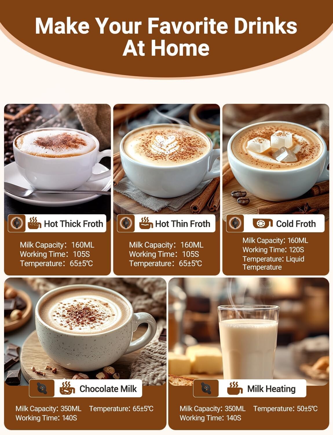 Mousseur à lait électrique multifonction – 600W | 5 modes | 350 ml | Nettoyage facile