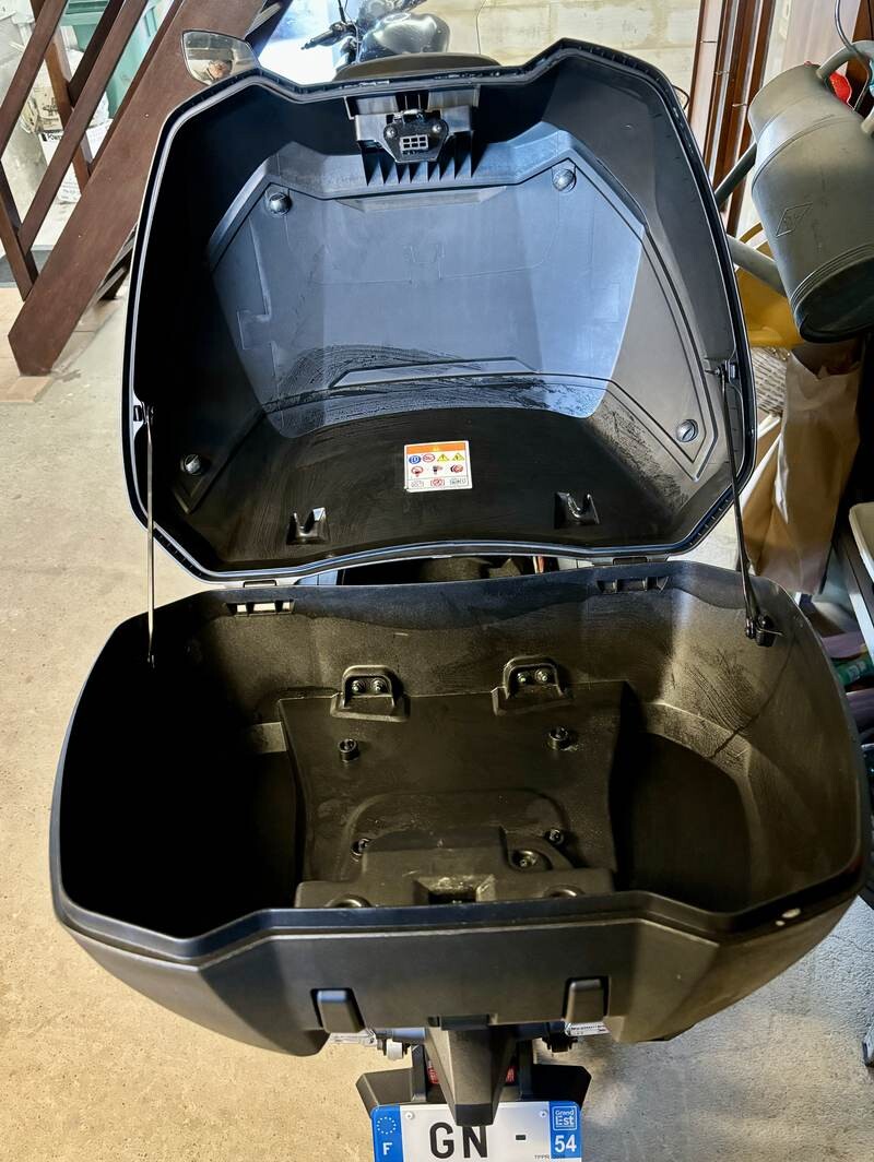 - Pratique et sophistiqué : Il dispose d'une bulle réglable 3 positions, d'un espace sous la selle pouvant acceuillir 2 casques ainsi que d'un kit Top Box 50L, d'une possibilité de connecter un smartphone et d'une prise USB Type-C dans la boîte à gants.