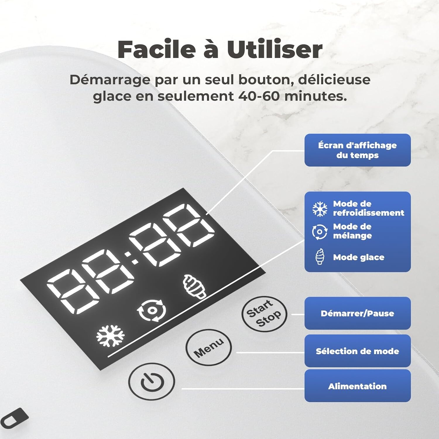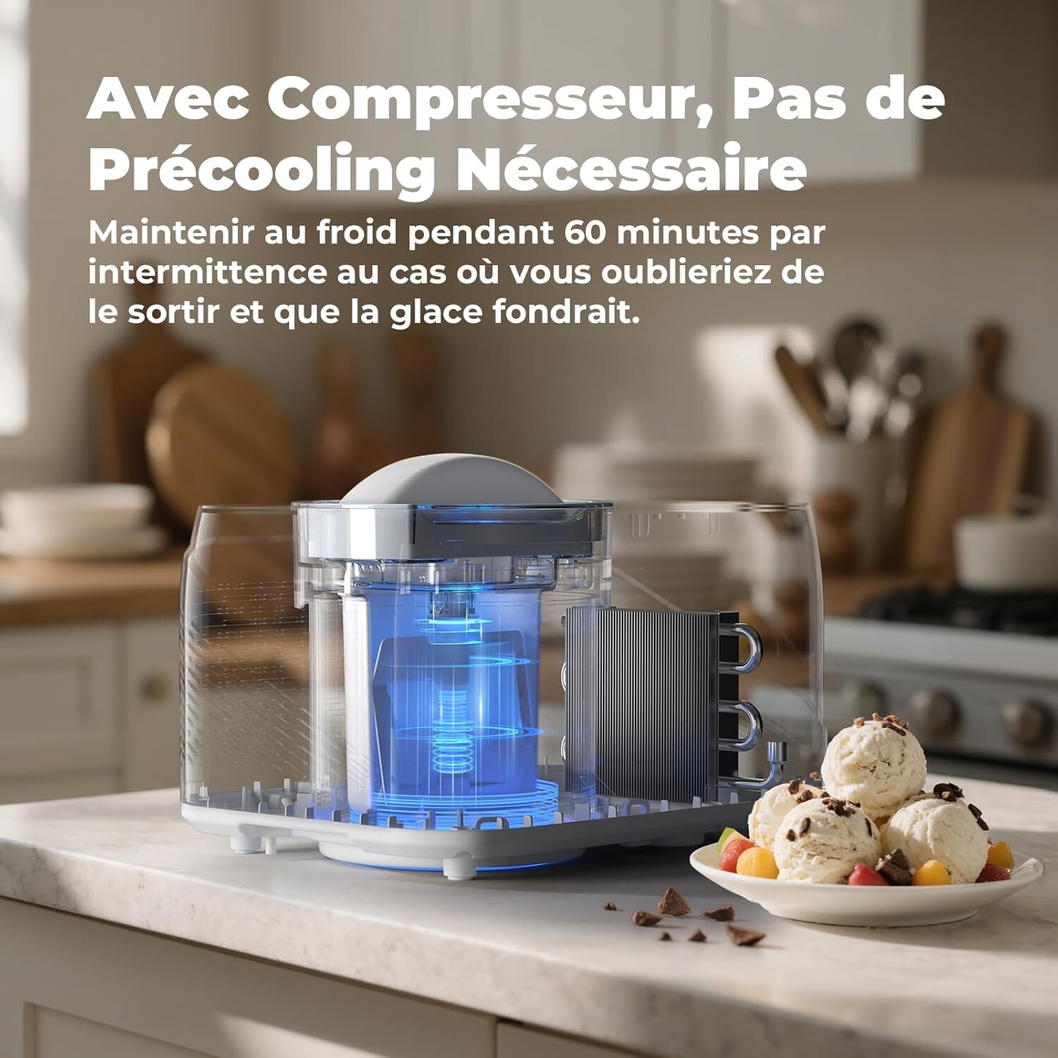 Dégustez des glaces maison en un clin d'œil grâce à cette sorbetière performante, prête à l’emploi sans pré-congélation. Son compresseur intégré vous libère des contraintes du congélateur : lancez votre glace en un clic, et savourez-la immédiatement !