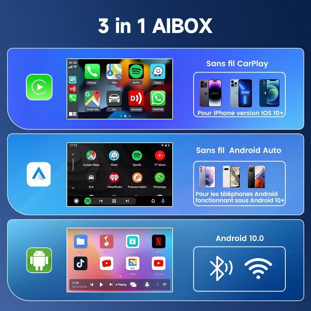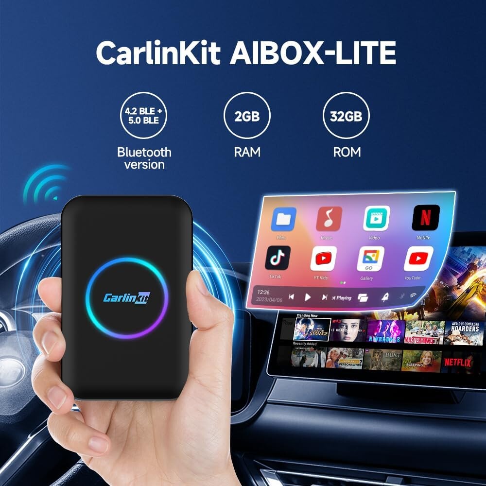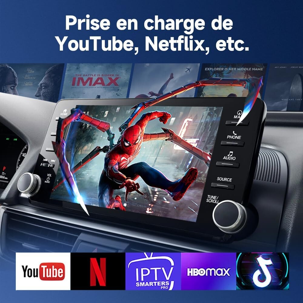 Le produit **Tbox-Lite** permet de transformer CarPlay filaire et Android Auto filaire en versions sans fil, tout en offrant un accès facile à des plateformes de streaming comme YouTube et Netflix.