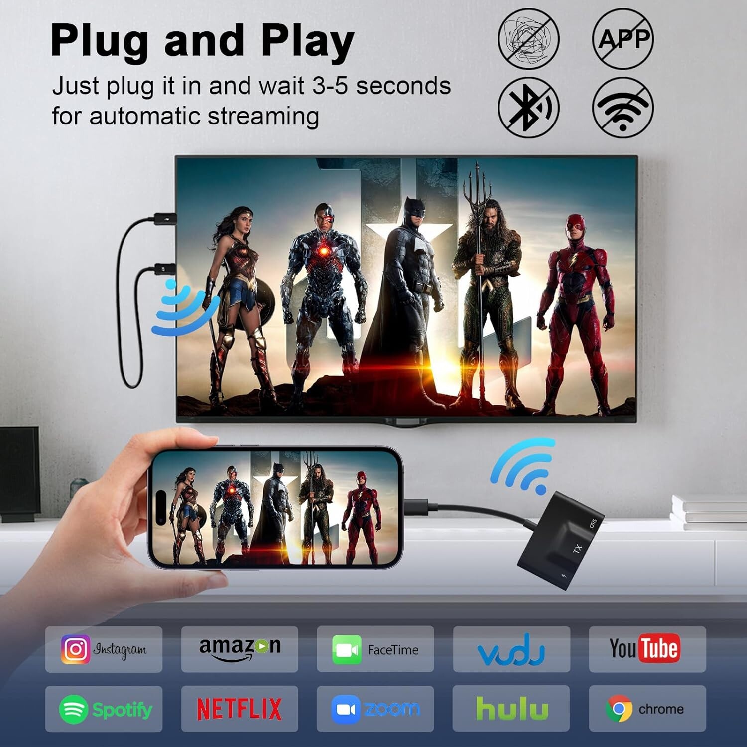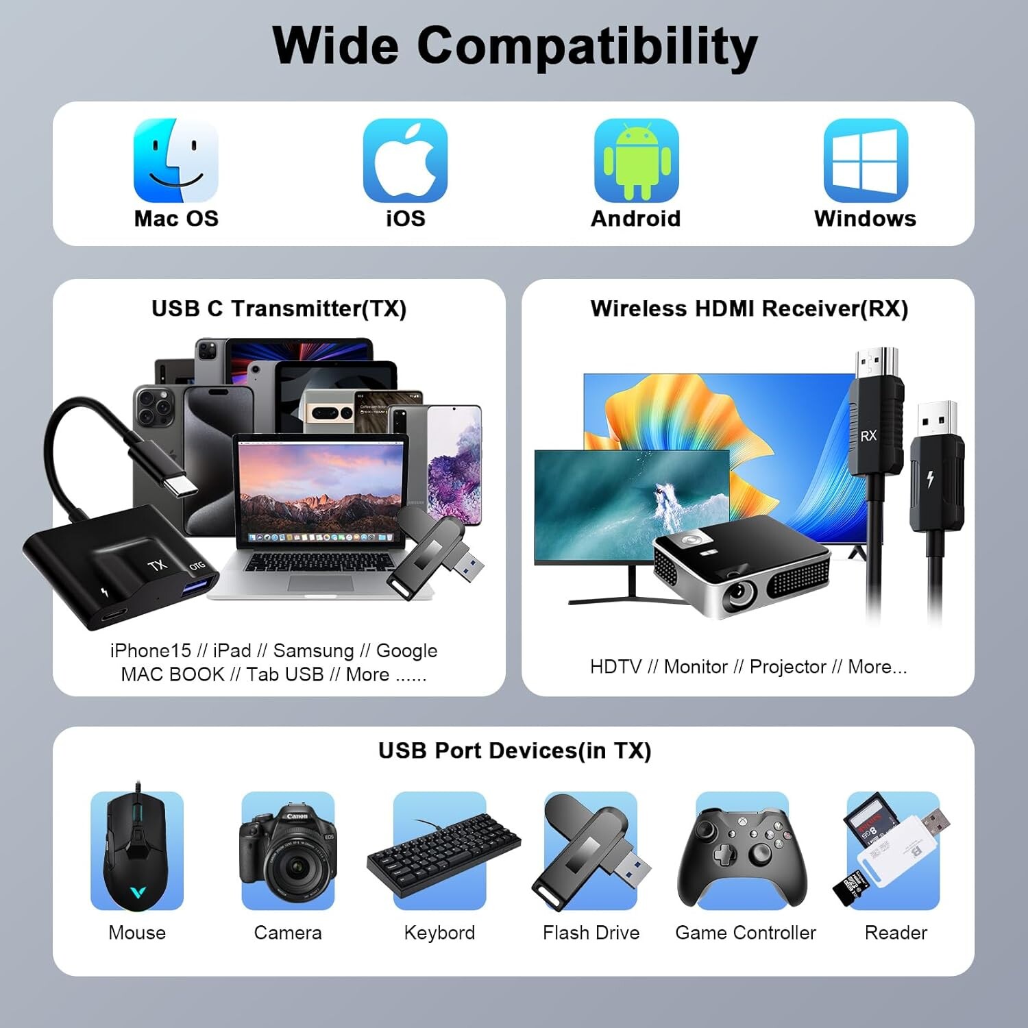 Le transmetteur récepteur sans fil USB C vers HDMI de la marque Anytrox permet de diffuser facilement du contenu audio/vidéo depuis des appareils compatibles USB C (smartphones, Macbook, tablettes, PC) vers des écrans plus grands. Voici les points principaux :